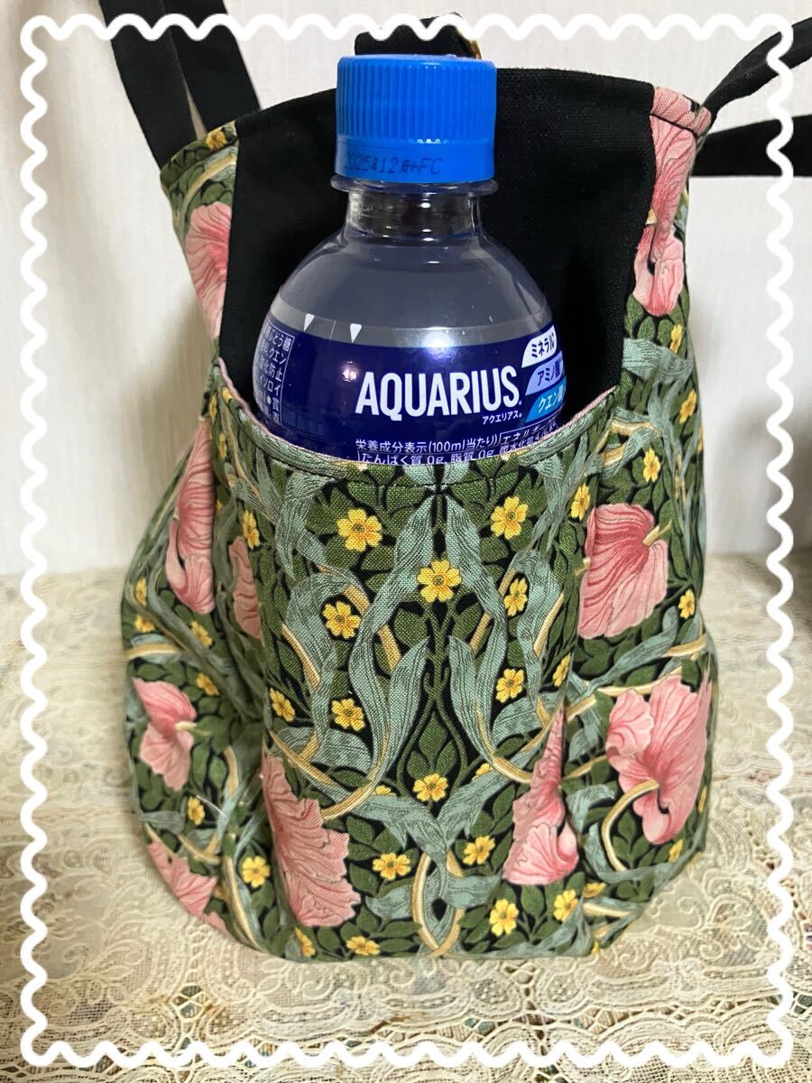 両サイドに ペットボトルが入るポケットをつけてました。 中にも大きなポケットが2つあります。