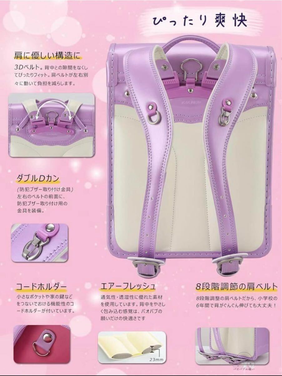 型崩れ防止強化加工。教科書を入れる大マチと呼ばれる部分に、形状補正樹脂を、その中央部分に鉄芯を内蔵し、型崩れや折れからランドセルを守ります。