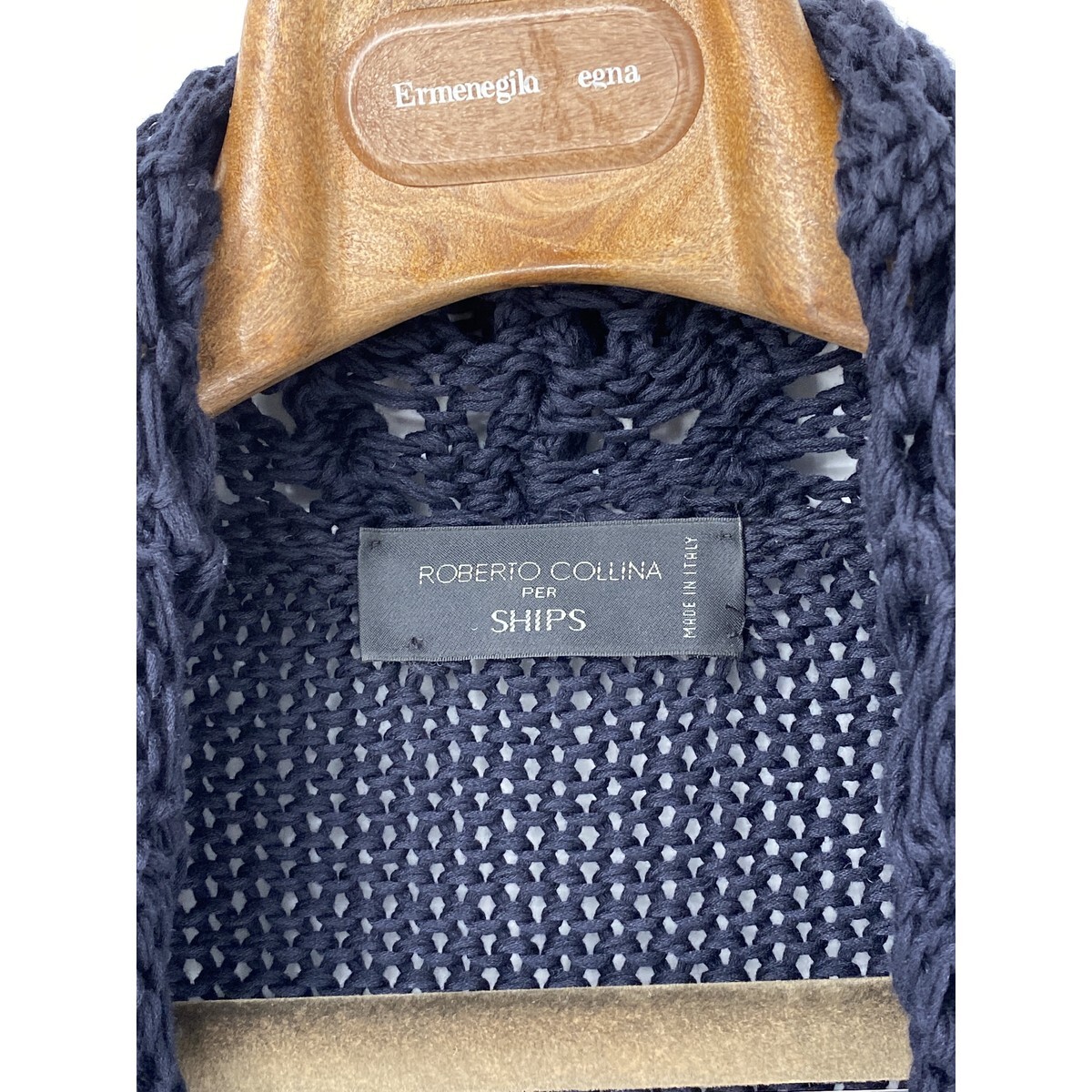 A8629/美品 春夏 ROBERTO COLLINA ロベルトコリーナ SHIPS 長袖 ローゲージ 前開き ニット カーディガン ジャケット M程 紺 レディース