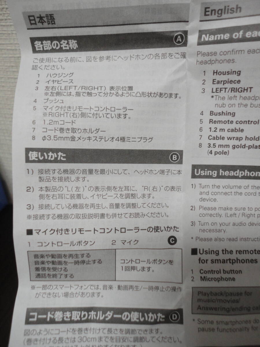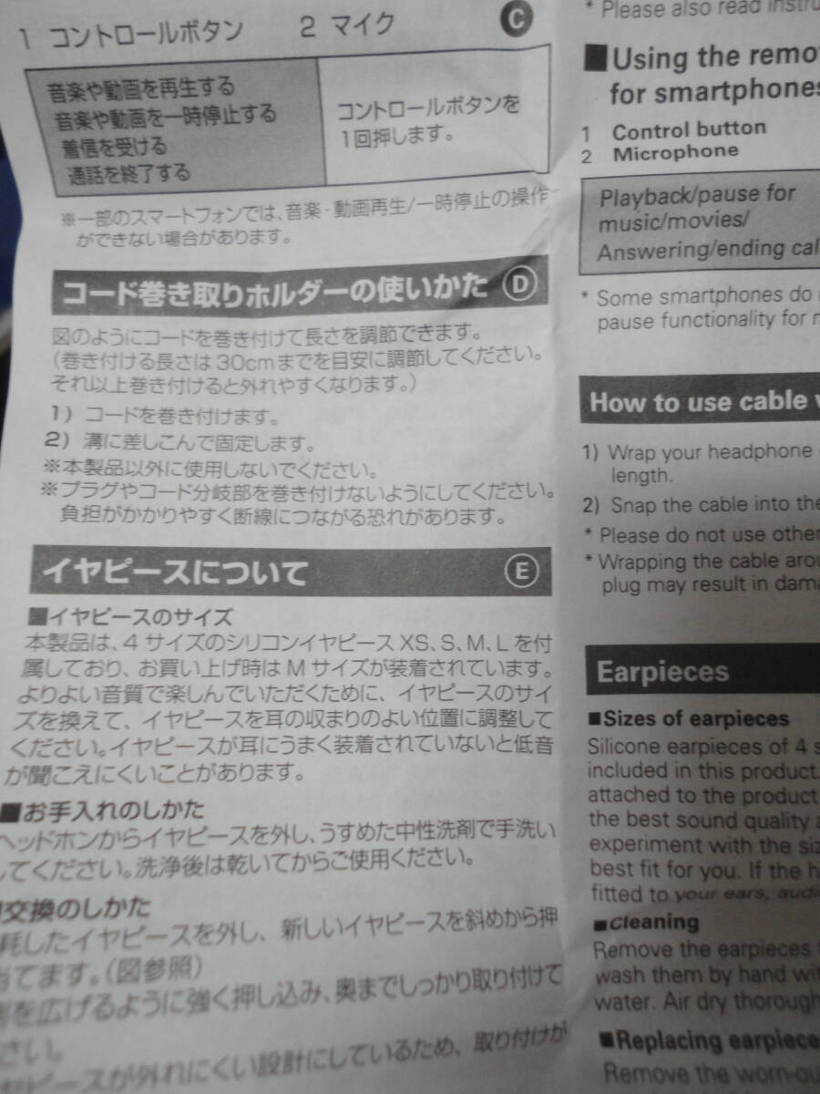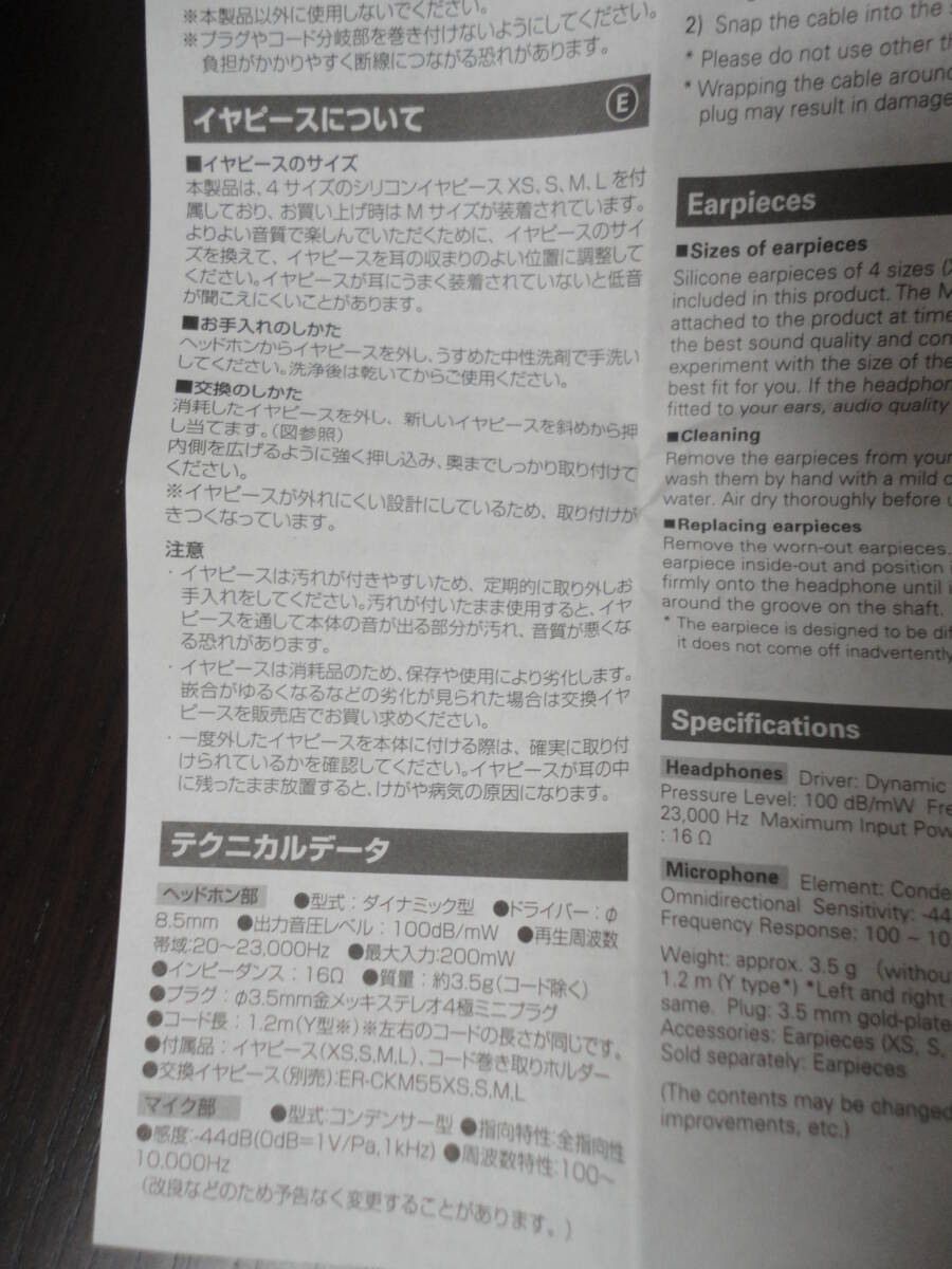 取扱説明書、予備イヤピース、コード巻き取りホルダーなど、付属品は全てお付けします。