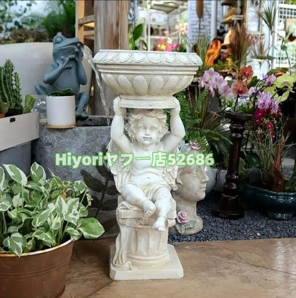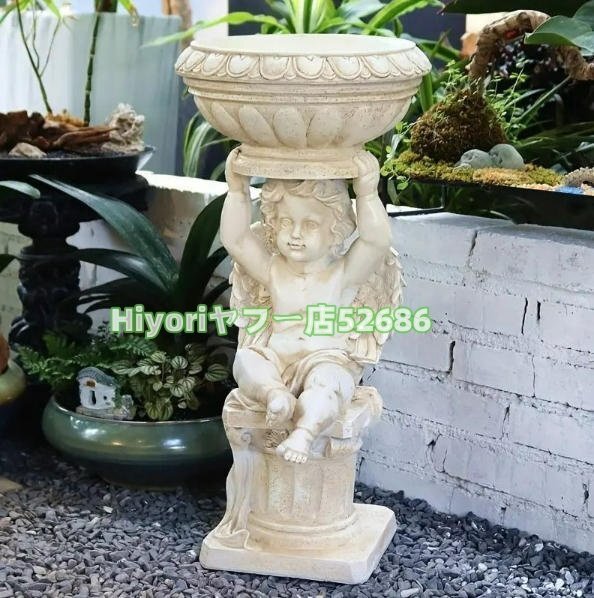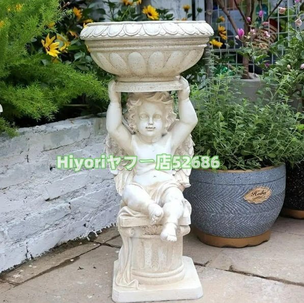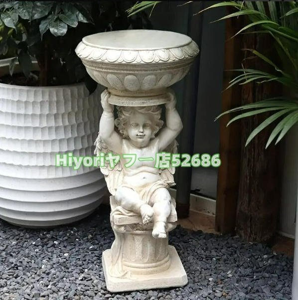 ガーデンオーナメント 天使 エンジェル エレガント 西洋 おしゃれ かわいい オフホワイト ガーデン オブジェ 自立式 屋外 装飾用