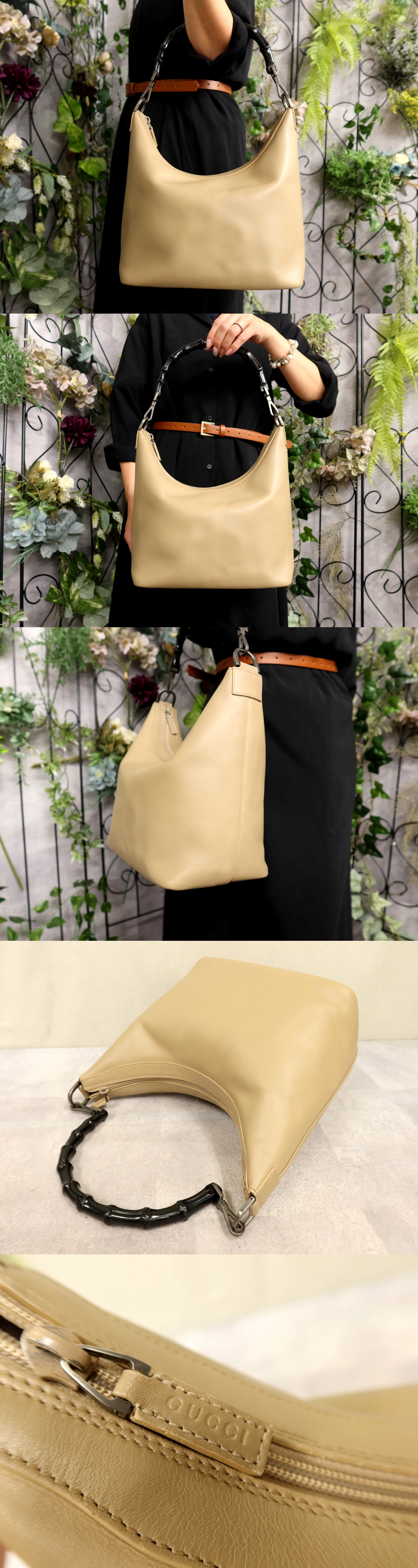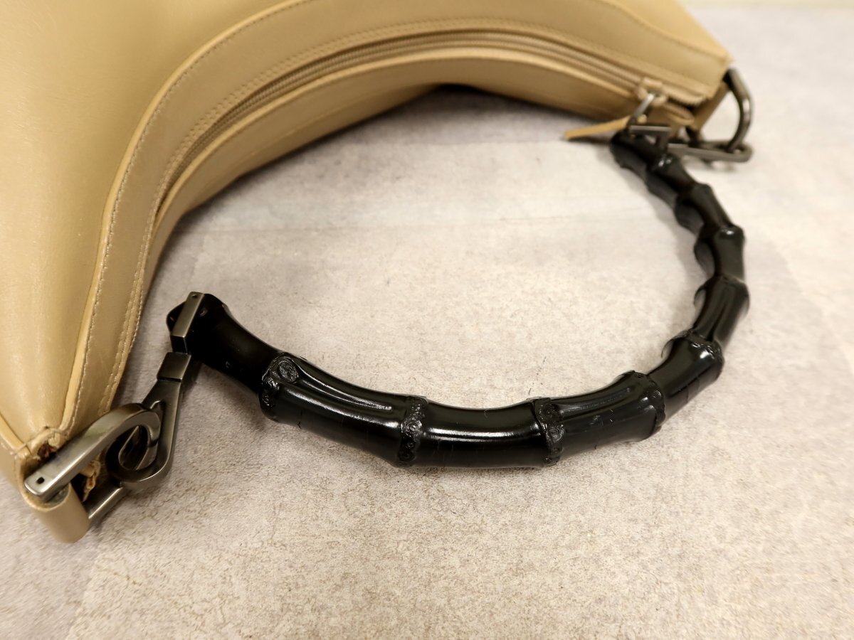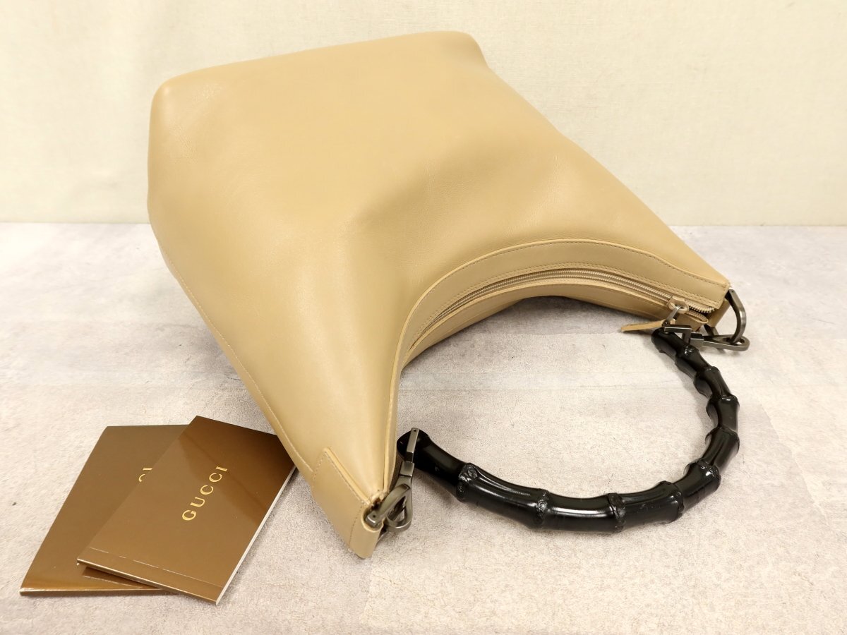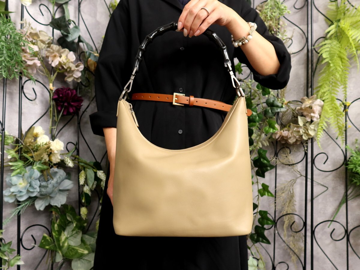 ●超美品●GUCCI グッチ●バンブー●カーフ レザー 本革●トート バッグ●ベージュ系●イタリア製●腕掛け●かばん●Js60468