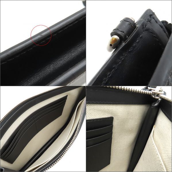【外側】表面に僅かな薄汚れ、マチに僅かな擦れ傷、三つ角に僅かな擦れ、コバやストラップに微かな押し跡、金具に僅かな擦れや錆【内側】僅かな擦れ、ポケットに僅かなボンド汚れや接着の浮き、カードポケットに僅かな素材特有の毛羽立ち【におい】僅かな保管臭