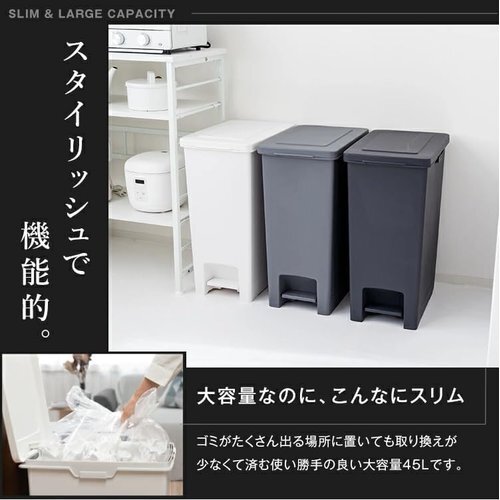 新品★ アスベル 日本製 キッチンに最適 グレー 45L ECエバンペダル ゴミ箱 52