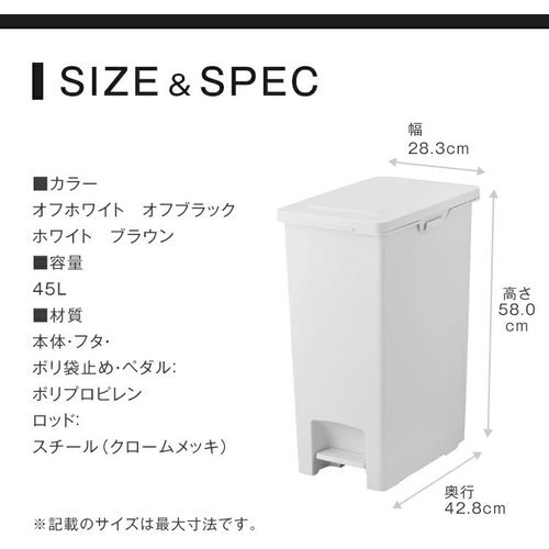 材質:本体・フタ・ポリ袋止め・ペダル/PP、ロッド/スチール(クロームメッキ)
