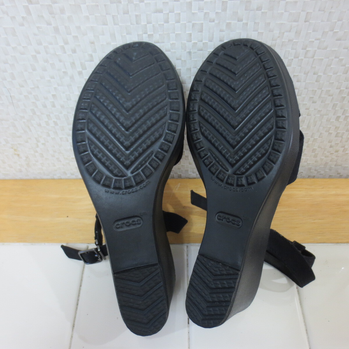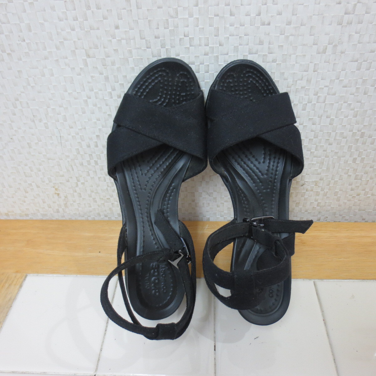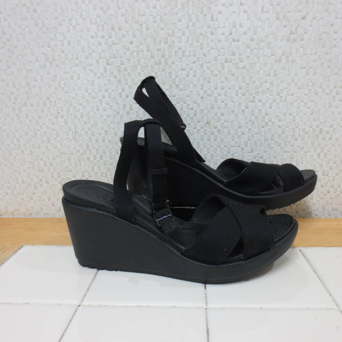 新品同様 クロックス レイ 2.0 黒 24cm サンダル クロスストラップ ウェッジソール crocs レタパ送料600円 k9/15