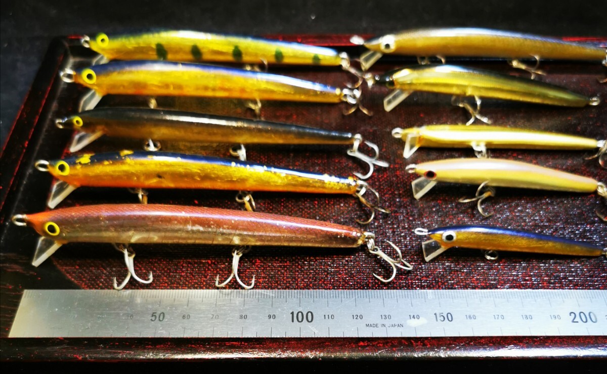 ★渓流湖管釣ミノー 色々10本★約13㎝ 金箔他★銘無・ヨゴレ小キズ有付属品欠品有★★フローティング ★鮎イング他★