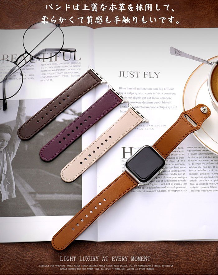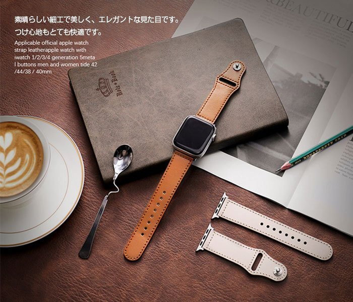 apple watch 対応交換バンド 本革交換用ベルト 38/40 42/44 apple watch Series 4 Series 3 Series 2 Series 1【ベージュ 38/40MM】
