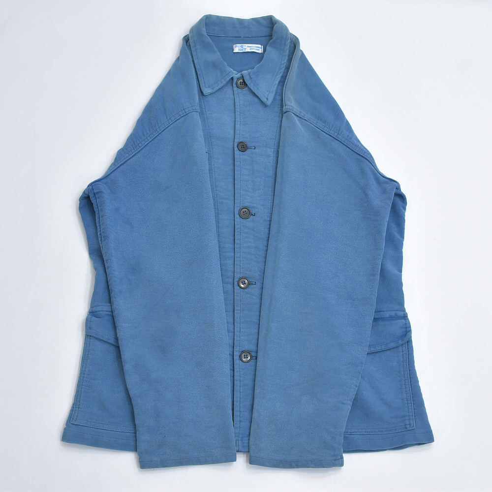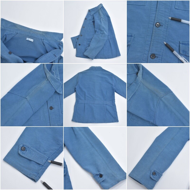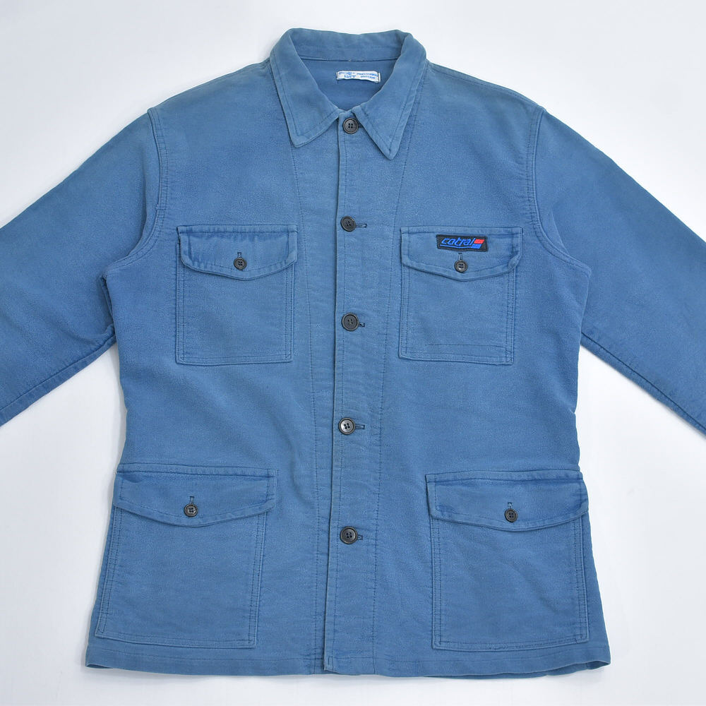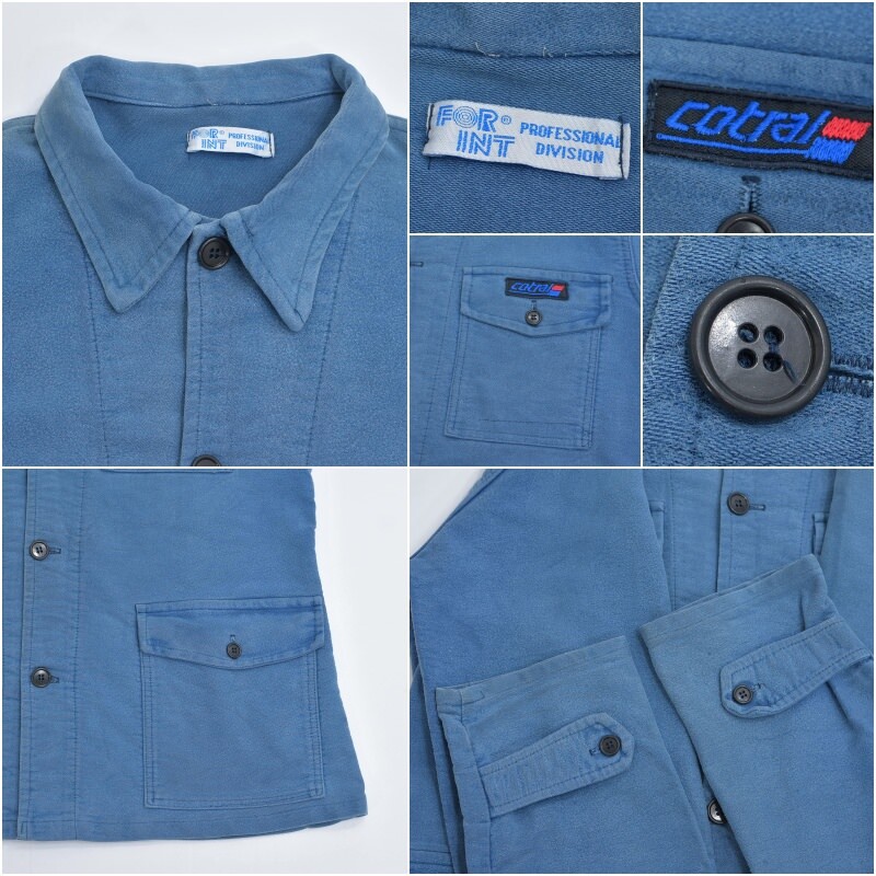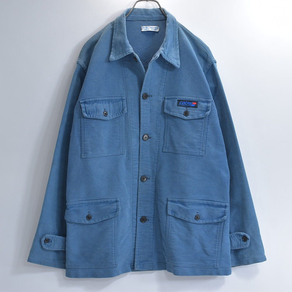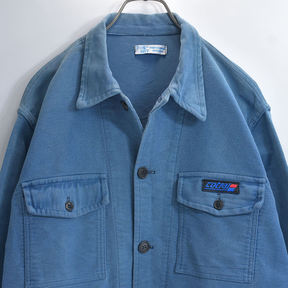 70~80s Cotral コトラル 4ポケット 企業ロゴ ワッペン ユーロ ワーク ジャケット カバーオール フェードブルー フレンチヴィンテージ ビンテージ ヨーロッパ古着 メンズL相当