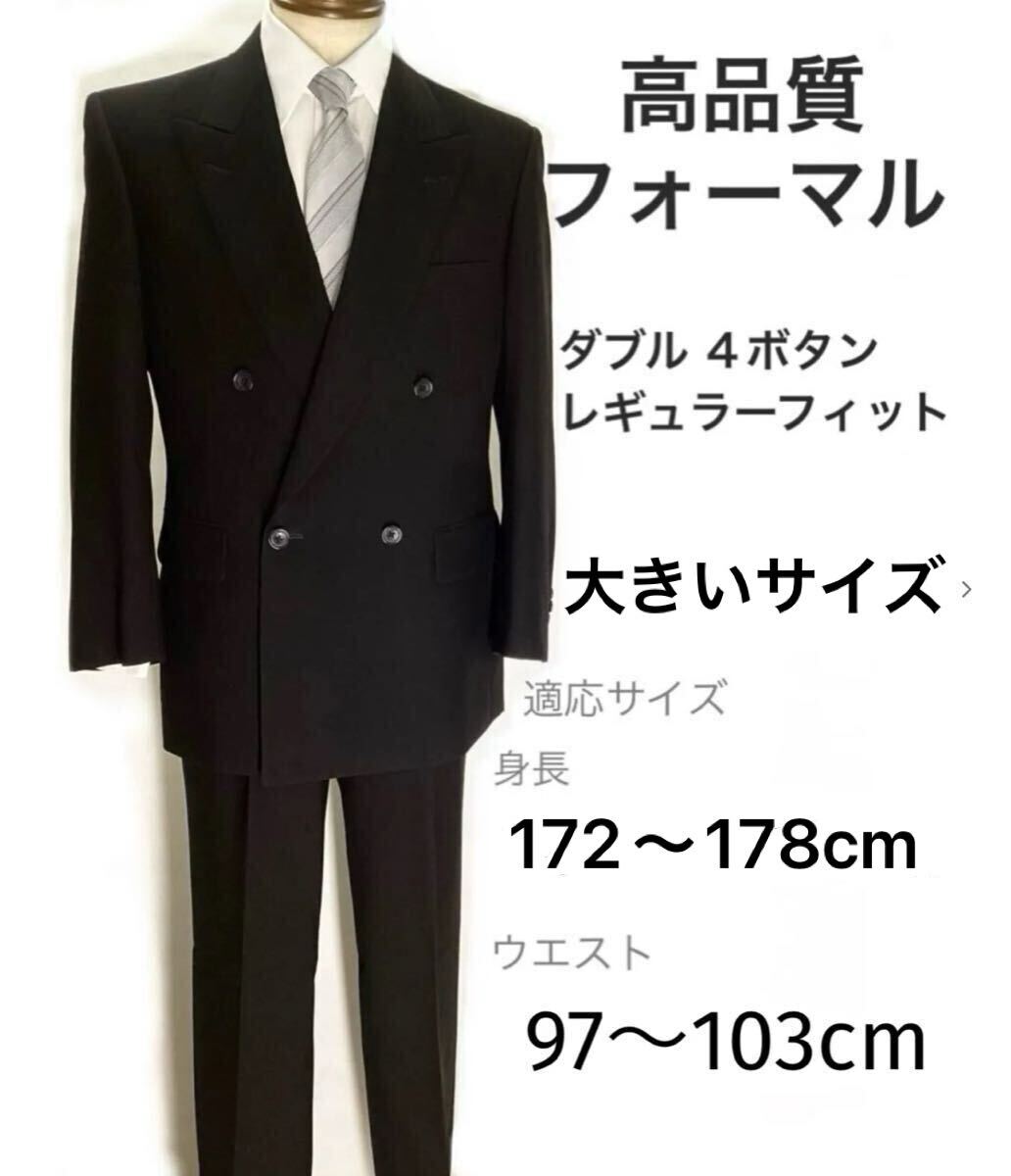 高品質 礼服 ダブル4釦 メンズ ブラック フォーマル E6 冠婚葬祭 スーツ