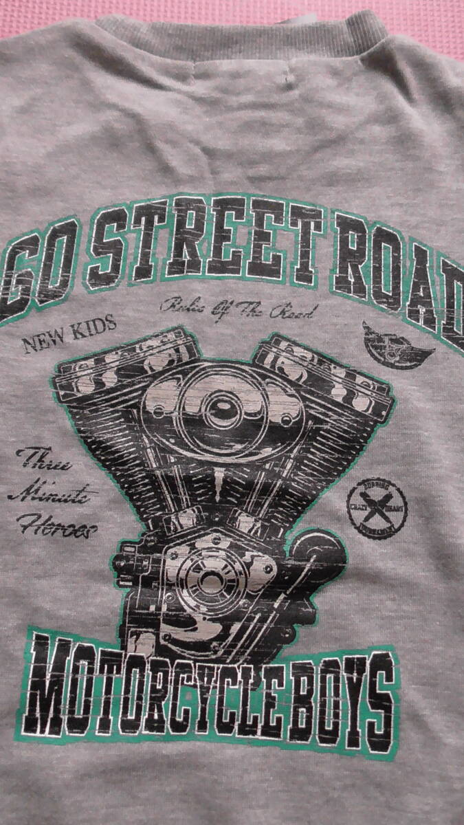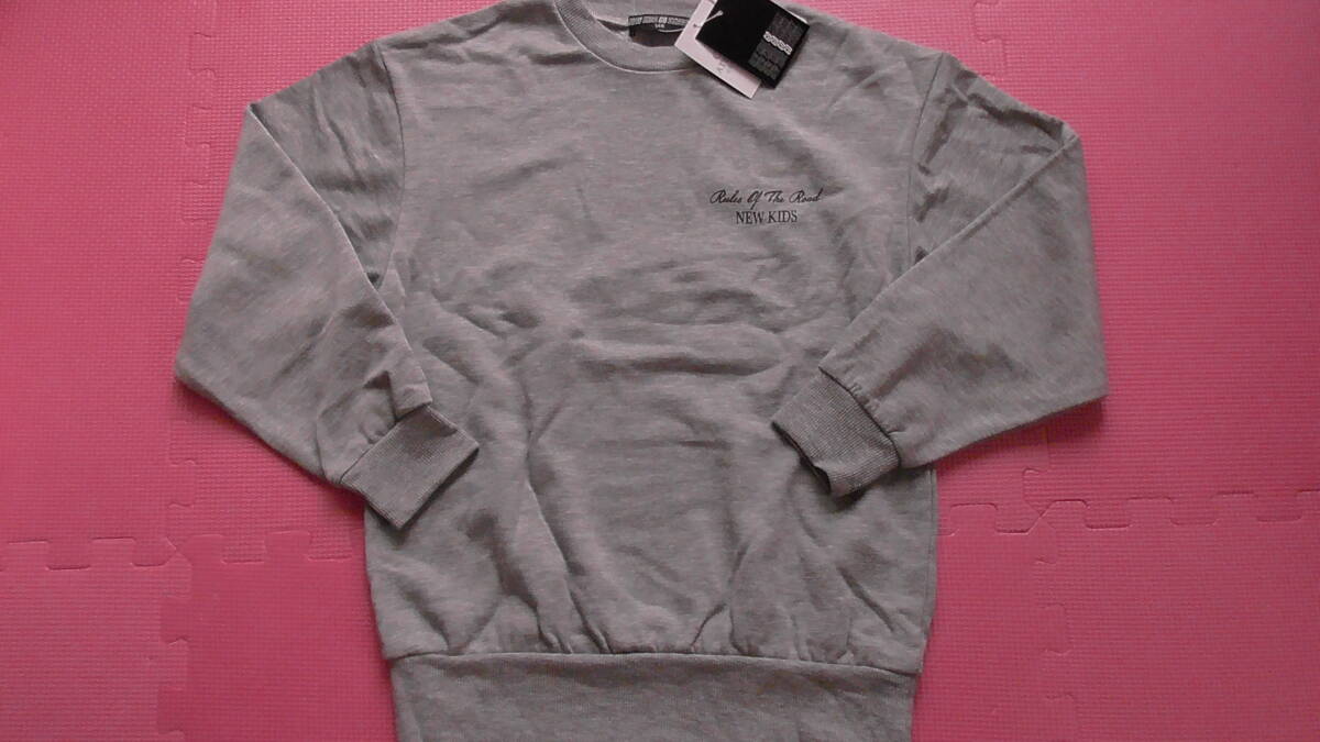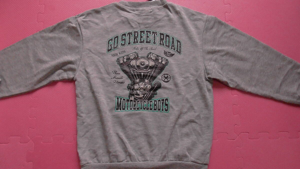 新品 140 長袖トレーナー グレー バイク マフラー 背中英字ロゴかすれプリント バックプリント 裏毛 小学生 男の子 秋物 130〜 送料無料