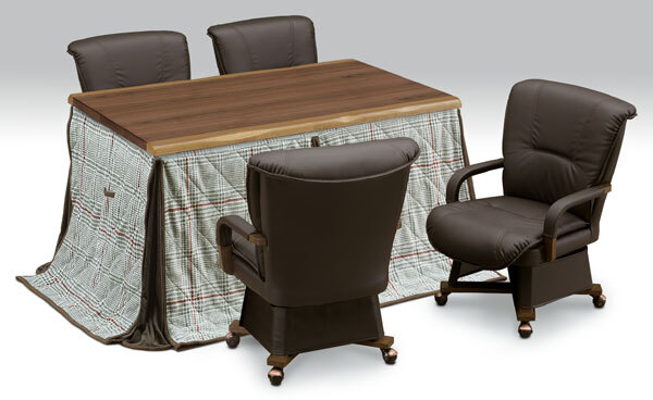 ハイタイプ高脚/ダイニングコタツ こたつ135センチ幅(長方形)+肘付椅子4脚+チェック柄布団の6点セット ダークブラウン色【こたつ】落ち着いたテイストの家具調ハイタイプこたつテーブルです。継足式でテーブル高さを68/62/45/39センチの4段階に調節できます。ロータイプとしてもソファーとセットしてもお使いいただけます。ヒーターは薄型ですからテーブルとして使用時にヒーターは外からは見えません。温度調節は手元温度コントローラー式ですので、布団に手を突っ込まなくても手元で微妙な温度調節が出来ます。省エネ、エコ暖房で電気ストーブより暖かく、電気代もお得です。【椅子】ゆったりした回転いすは立ち座りが楽で、膝の痛むシルバーの方にも最適です。椅子は足元から暖気が逃げないように足カバー付きです。足カバーは簡単に取り外せます。【布団】チェック柄がポイントのシンプルで落ち着いた雰囲気のハイタイプこたつ布団です。薄掛けふとんですので使わない時の収納に場所をとりません。便利なリモコン収納ポケット付です。天板固定用のネジを通す穴あり。☆落札、ご入金確認後 1~2日にて発送いたします 追加納期のかかるものは商品ページに記載いたしております よろしくお願いいたします。