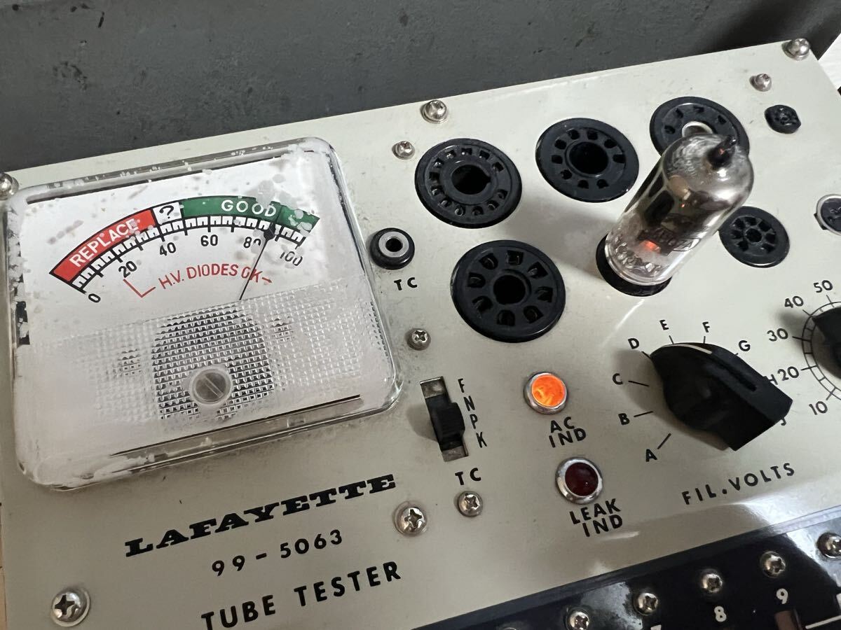 手持ちの真空管試験機(エミッション測定)で全数検査し