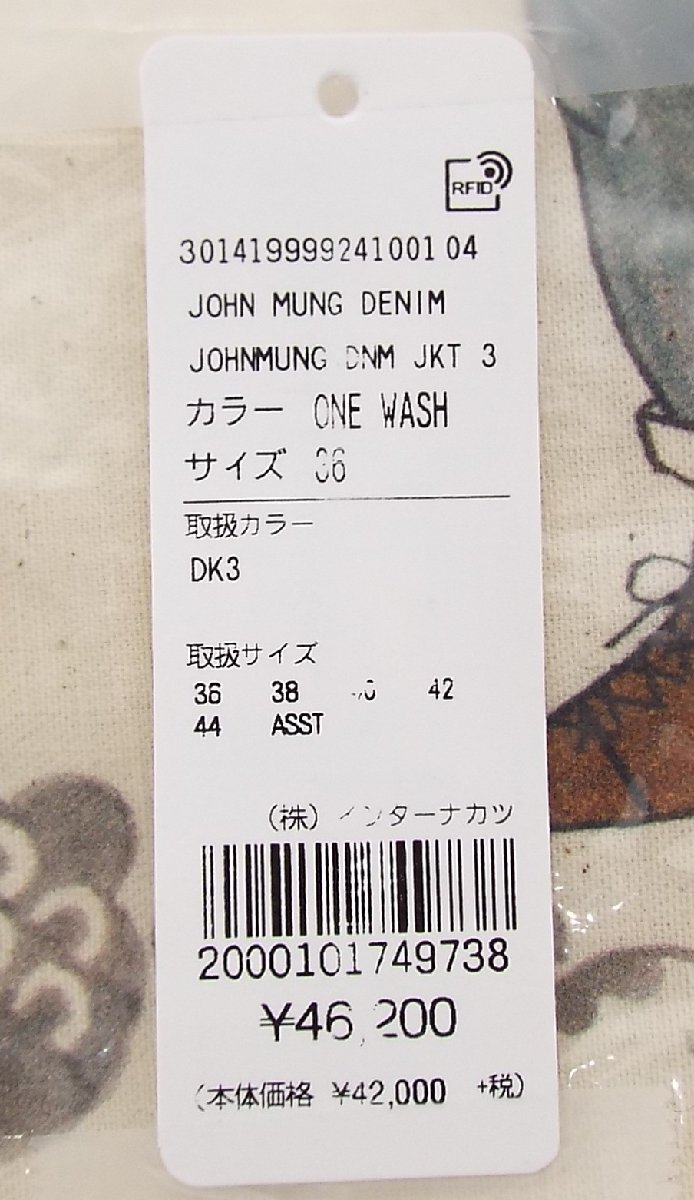 | 商品名 | JOHNMUNG DENIM ジョン万デニム ジョンマン ジョン万次郎 ジャケット Gジャン タグ付袋付 |