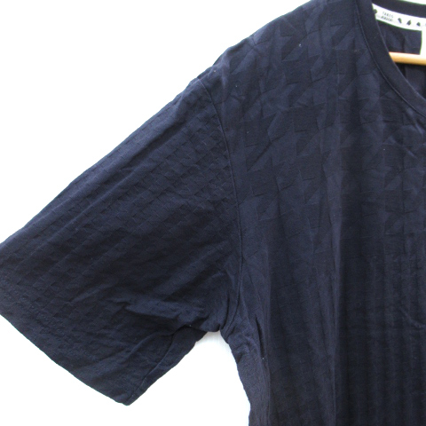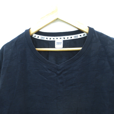 タケオキクチ TAKEO KIKUCHI Tシャツ カットソー 半袖 Vネック 千鳥格子柄 紺 ネイビー /SM17 メンズ