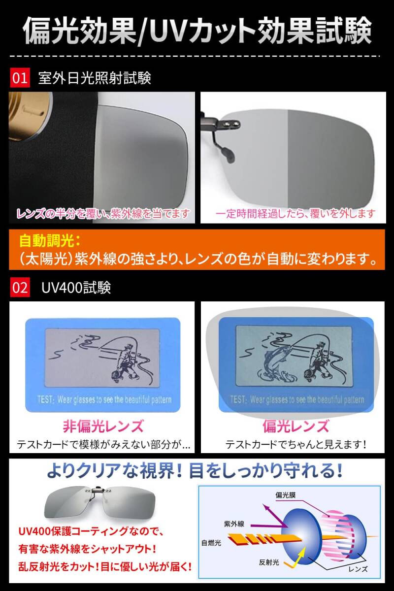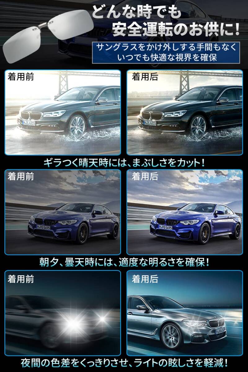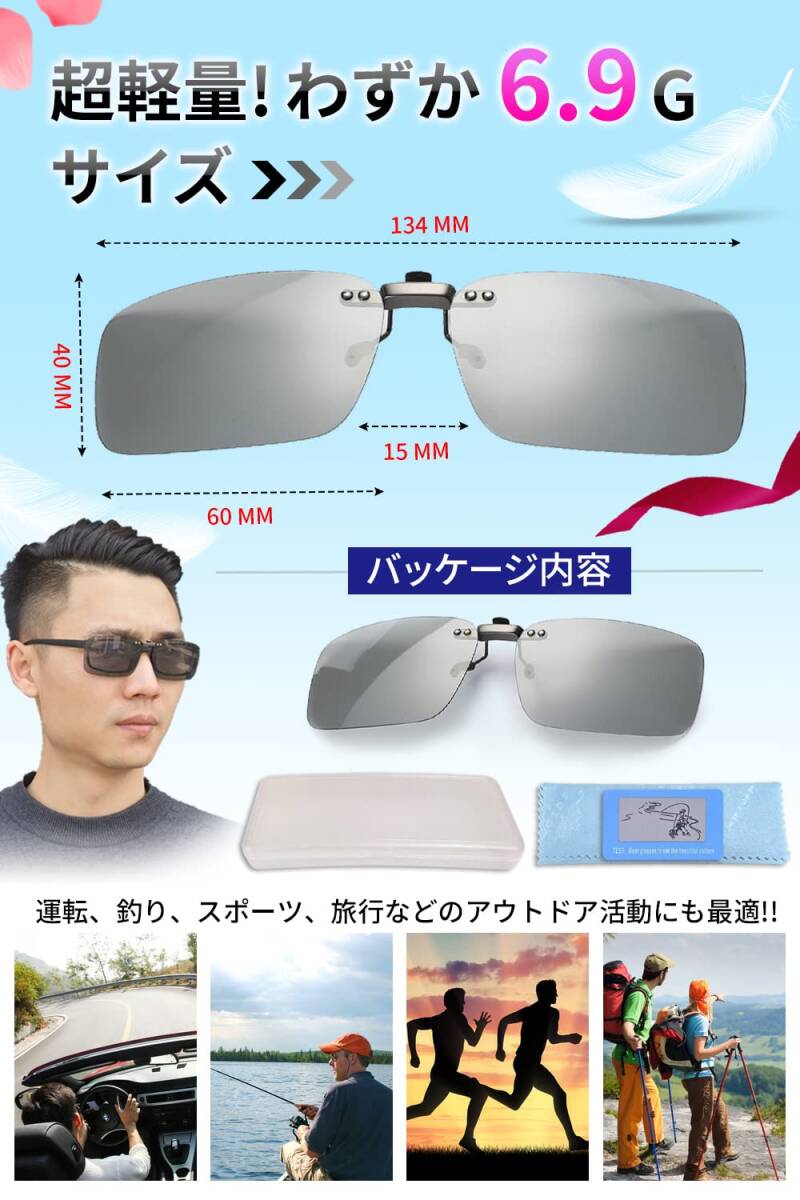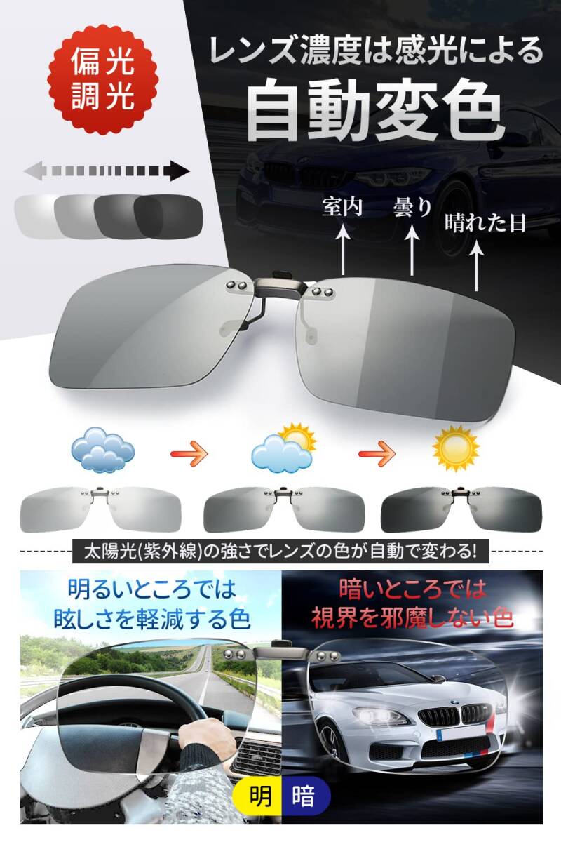 [KANGYONG] 調光 クリップ サングラス めがねの上から クリップオン 偏光サングラス 変色 固定タイプ メガネ 取り付け 偏光サングラス ドライブ 運転 昼夜兼用 メガネの上からかけるサングラス