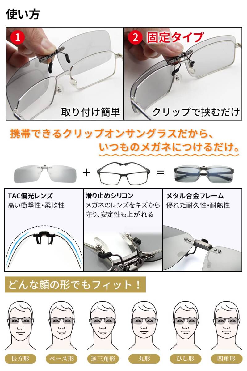 メガネの上からかけるサングラス 昼夜兼用 運転 ドライブ 偏光サングラス 偏光サングラス 取り付け メガネ 固定タイプ 変色 クリ