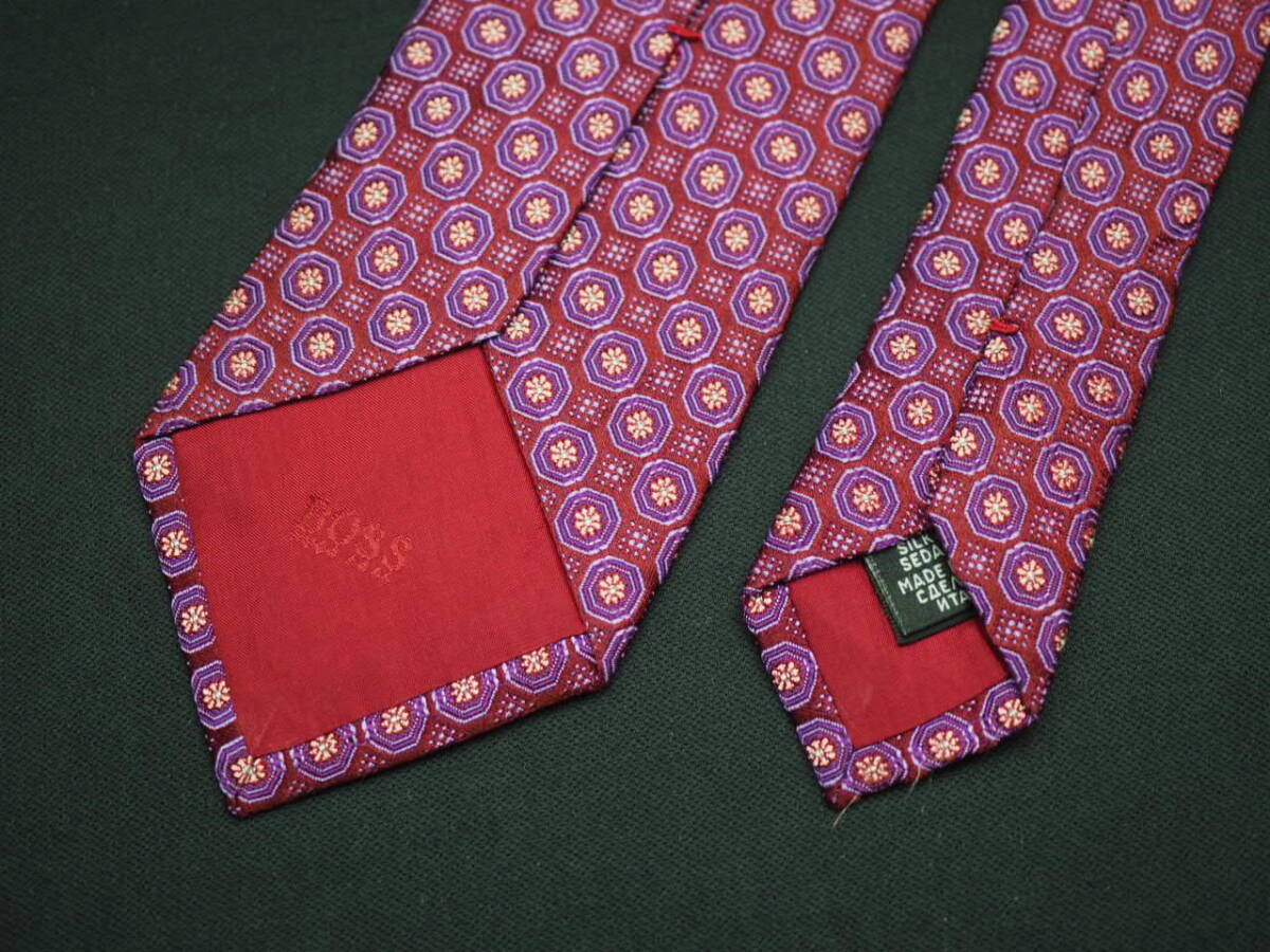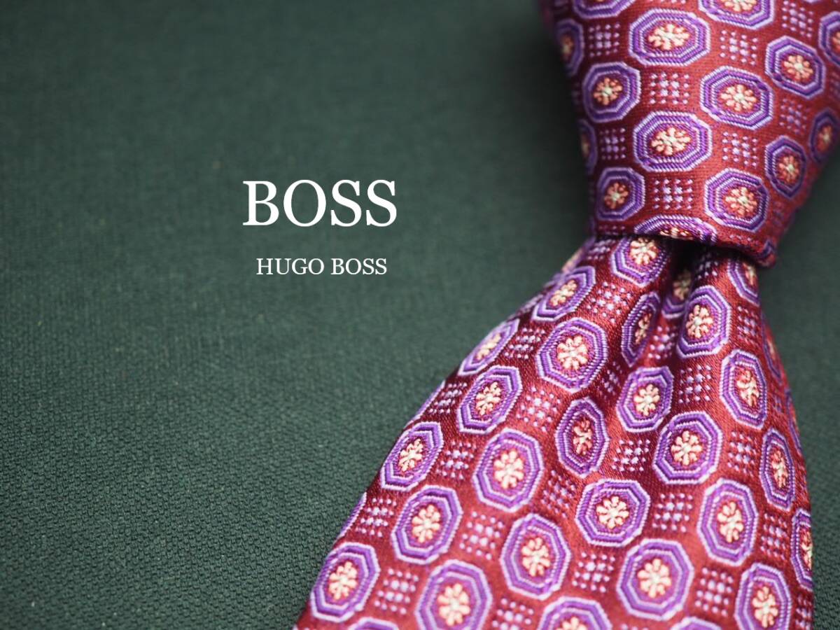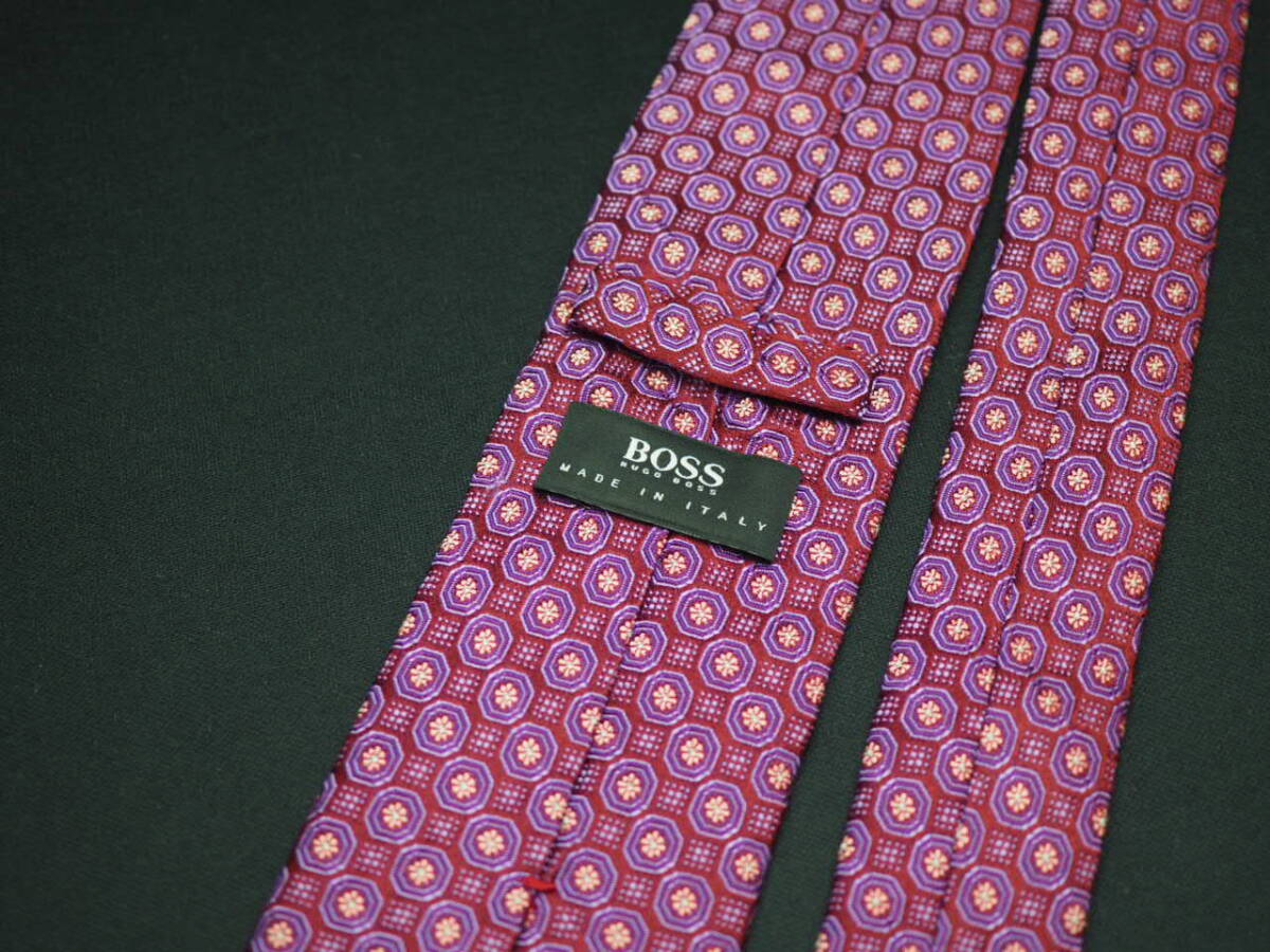 美品【HUGO BOSS ヒューゴ ボス】 F2242 ワイン系 SILK ブランド ネクタイ 古着 良品 転売 仕入