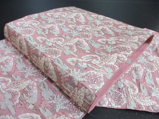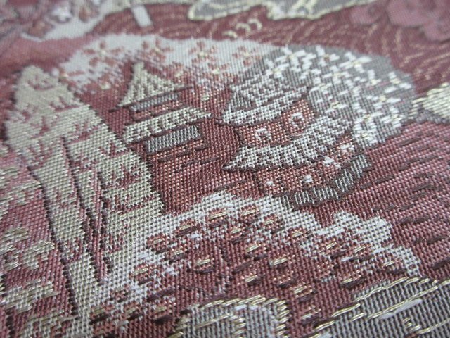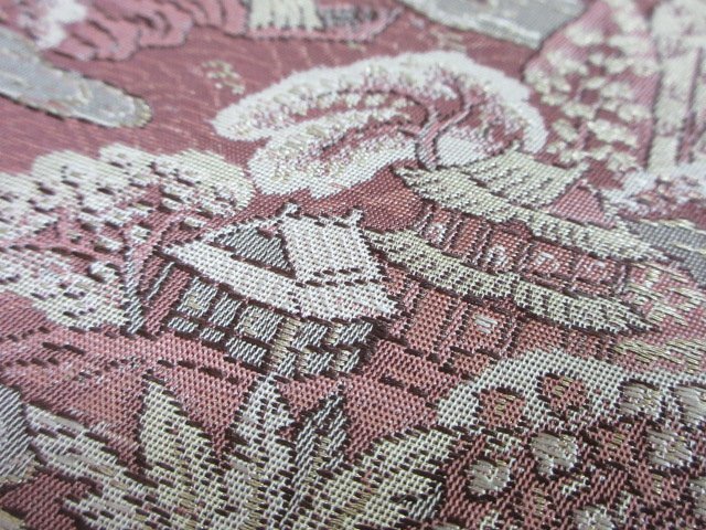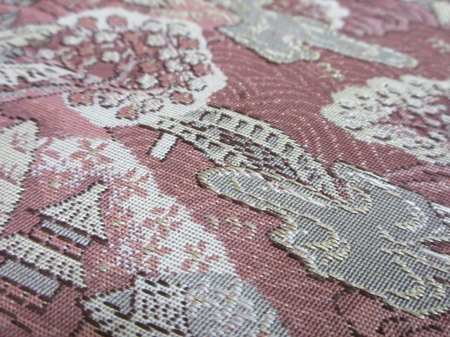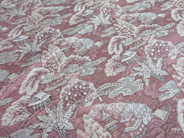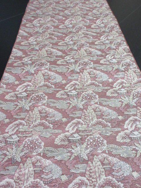 | 商品名 | 1円 中古 絹 化繊 開き名古屋帯 和装 和服 寺院仏閣 渡橋 立木 草花 お洒落 八寸帯 長さ343cm【夢職】★ |