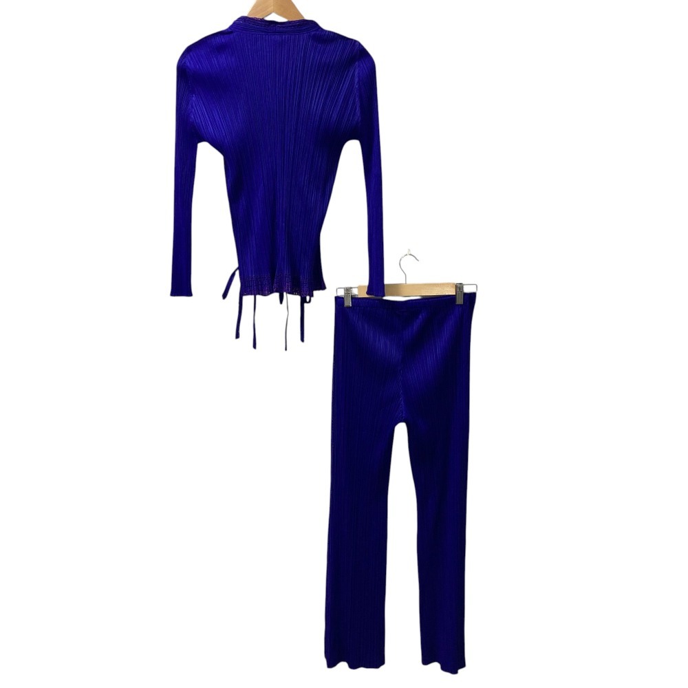 美品 PLEATS PLEASE ISSEY MIYAKE プリーツプリーズ イッセイミヤケ カーディガン シャツ パンツ 3ピース サイズ3 パープル