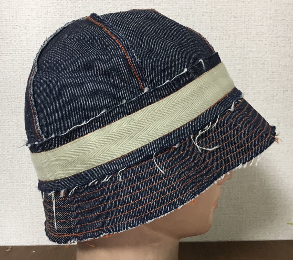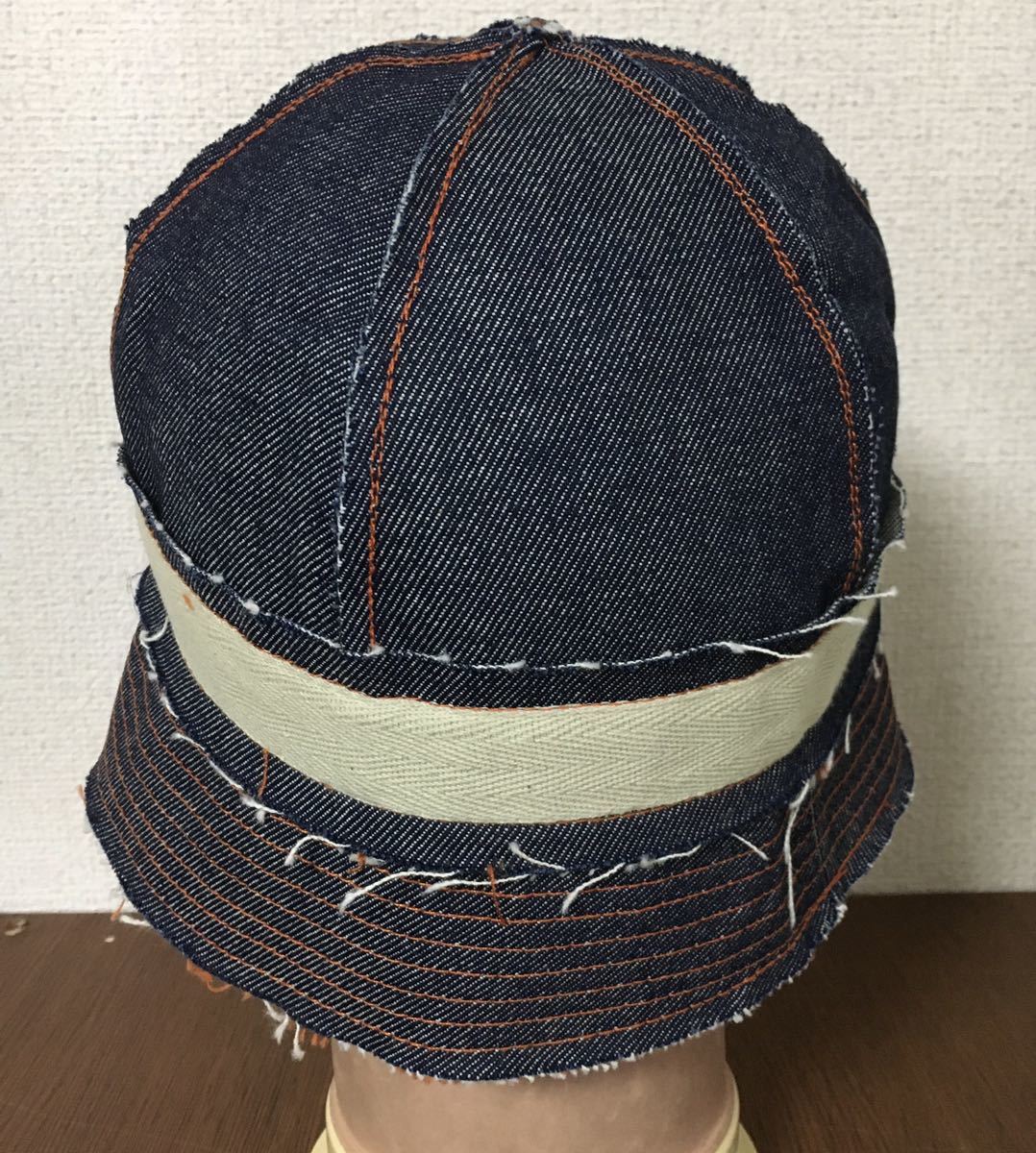 *Dome Piece USA* バケット帽 Bucket Hat -100% Cotton Denim 切りっぱなし(フリンジ)しっかり作ってます。