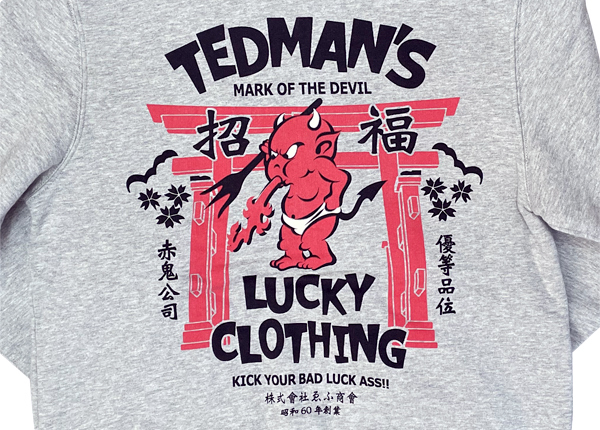EDMANと鳥居をメインにしたグラフィックに漢字を使い、和の雰囲気をイメージさせるパーカ。