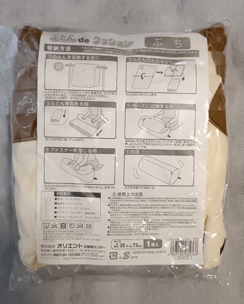 ふとん収納時にクッションとして使用できる収納袋「ふとんdeクッション」です。