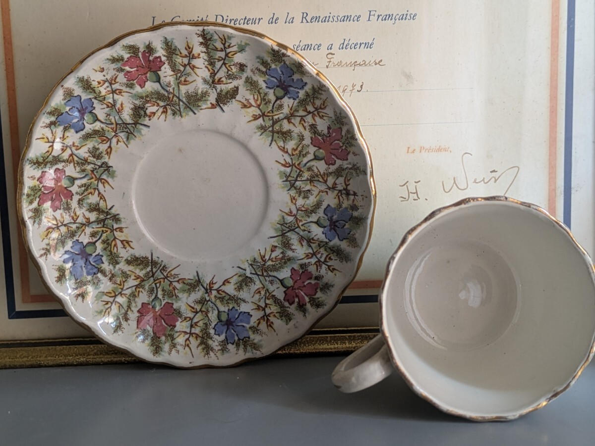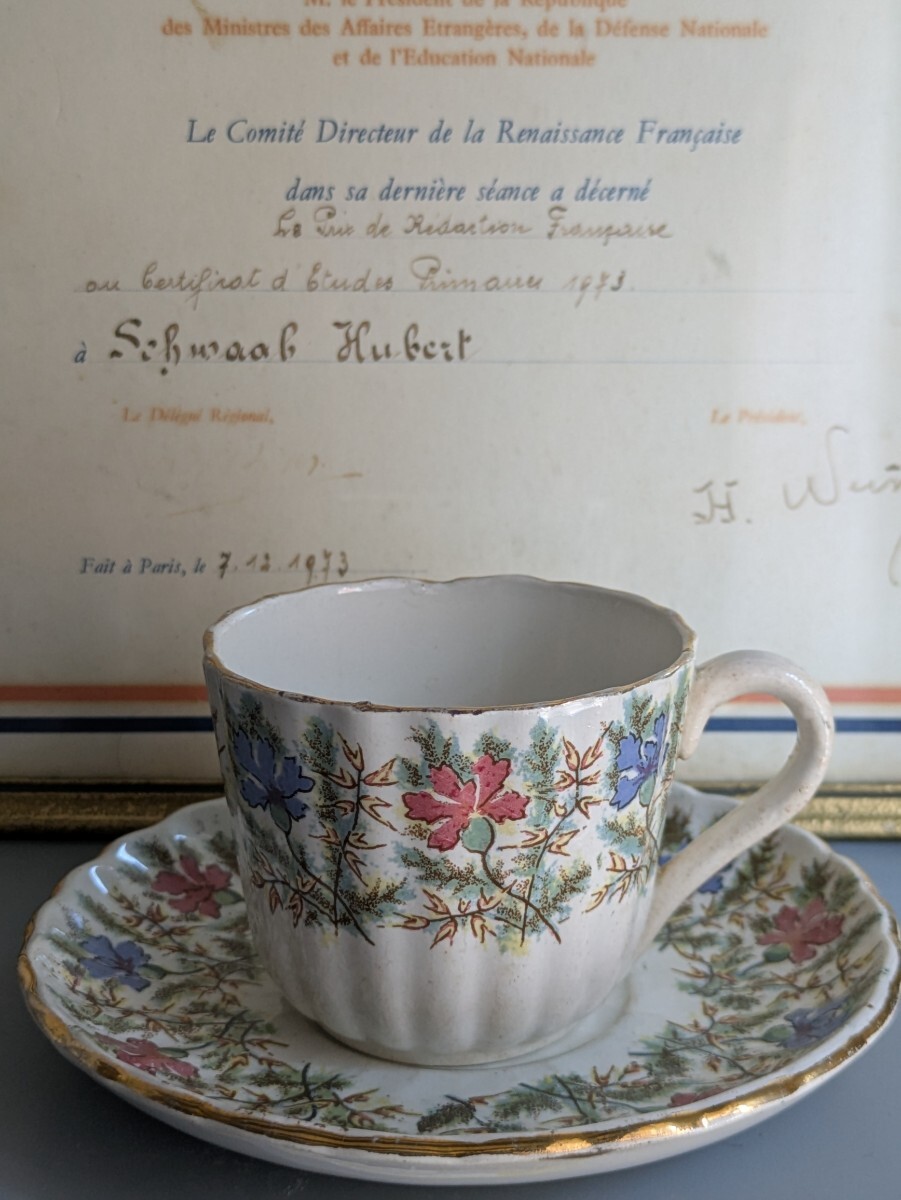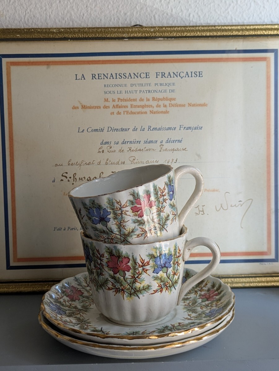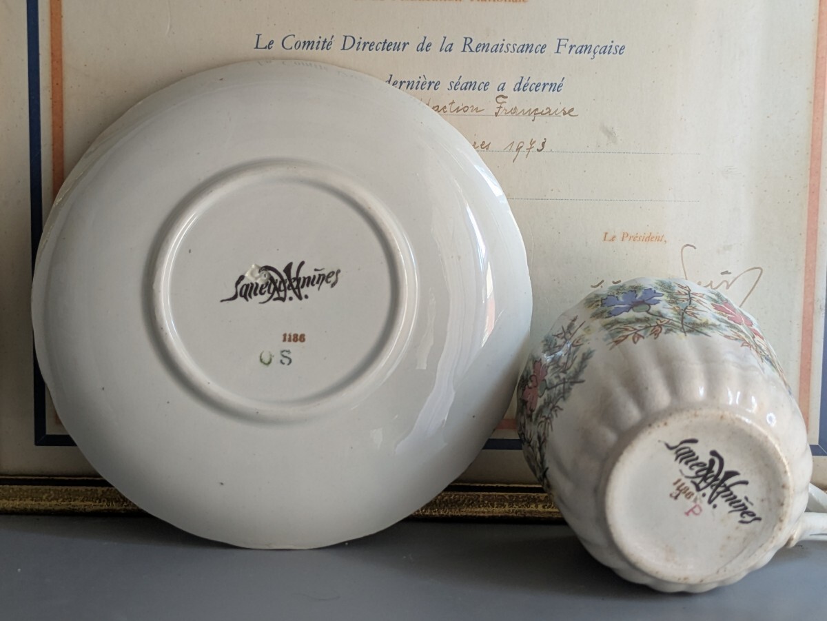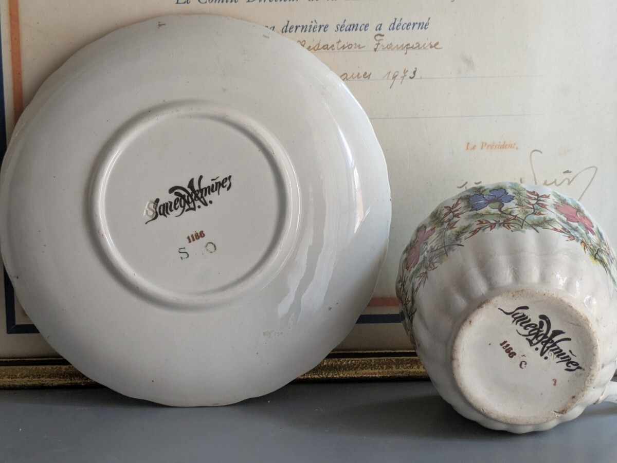 フランスのブロカント蚤の市で購入したSarreguminesサルグミンヌのカップ&ソーサー2客セットです。