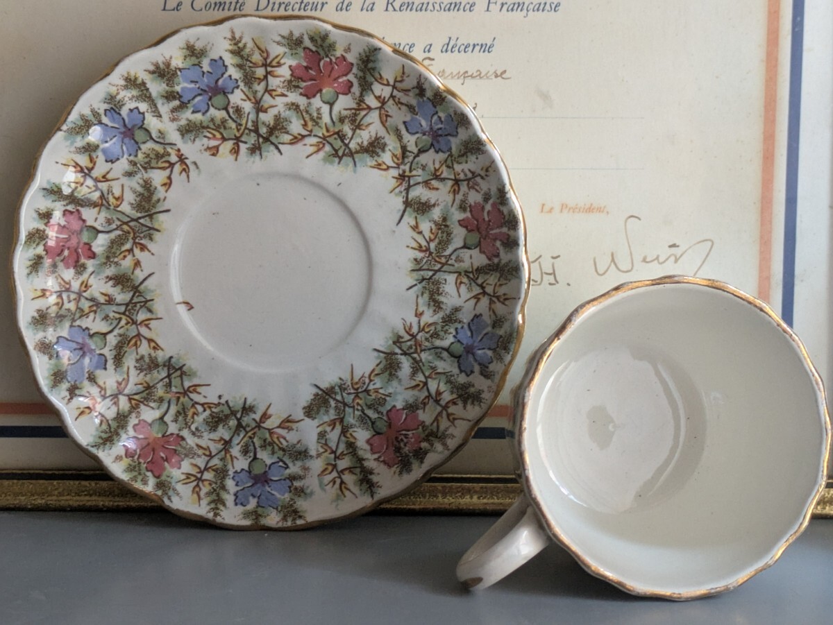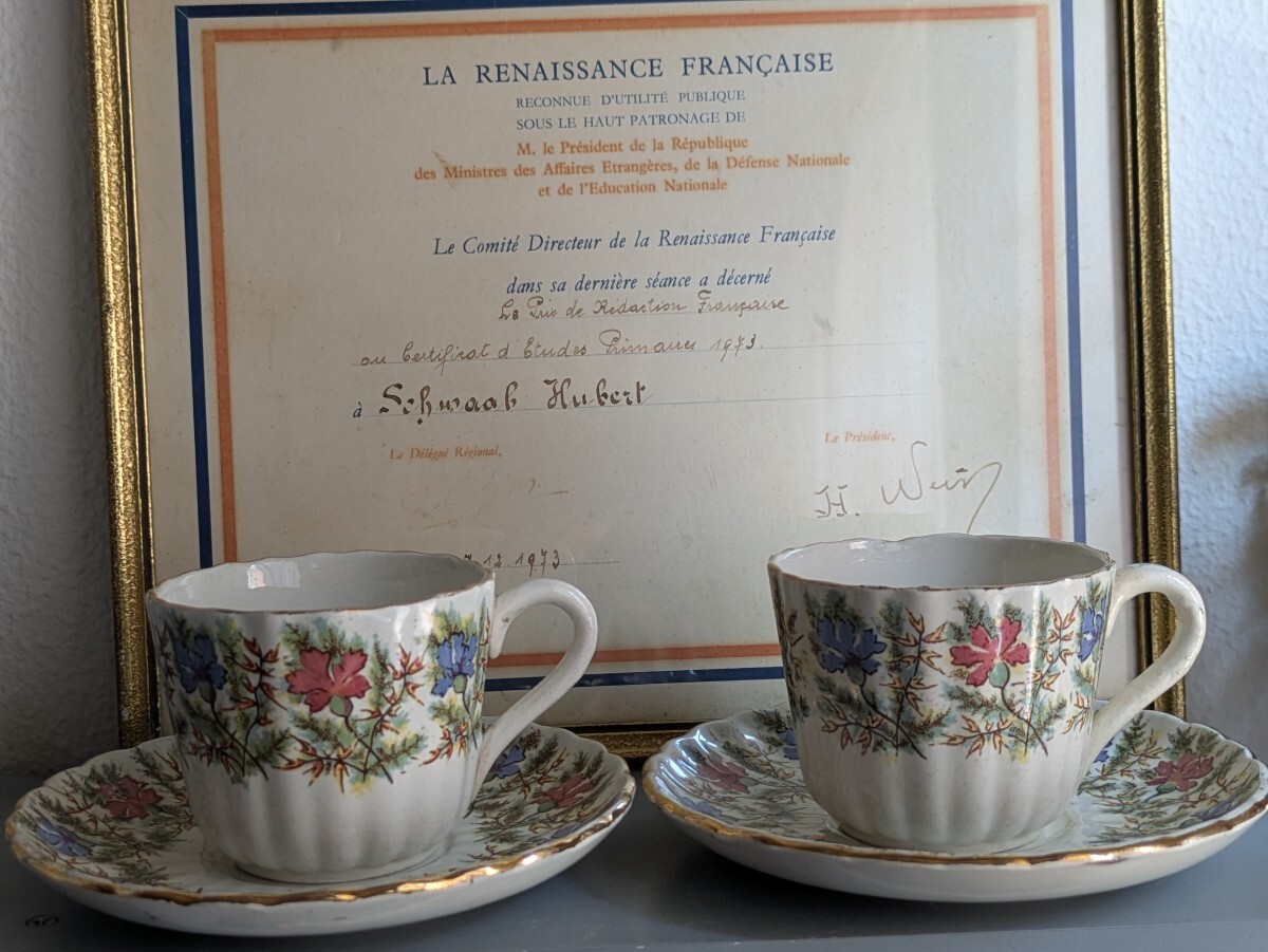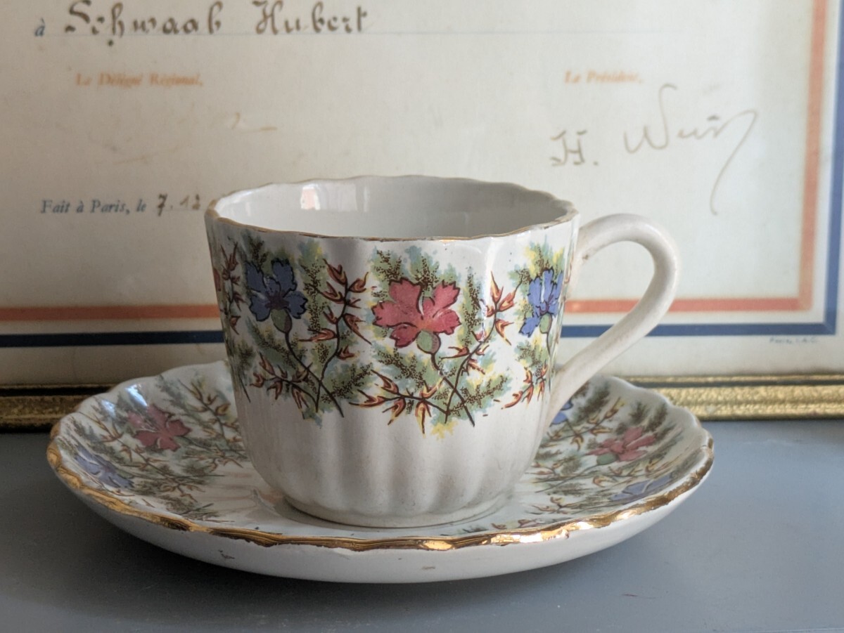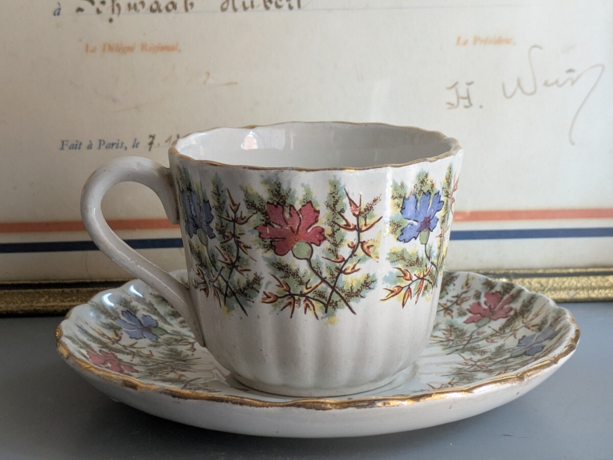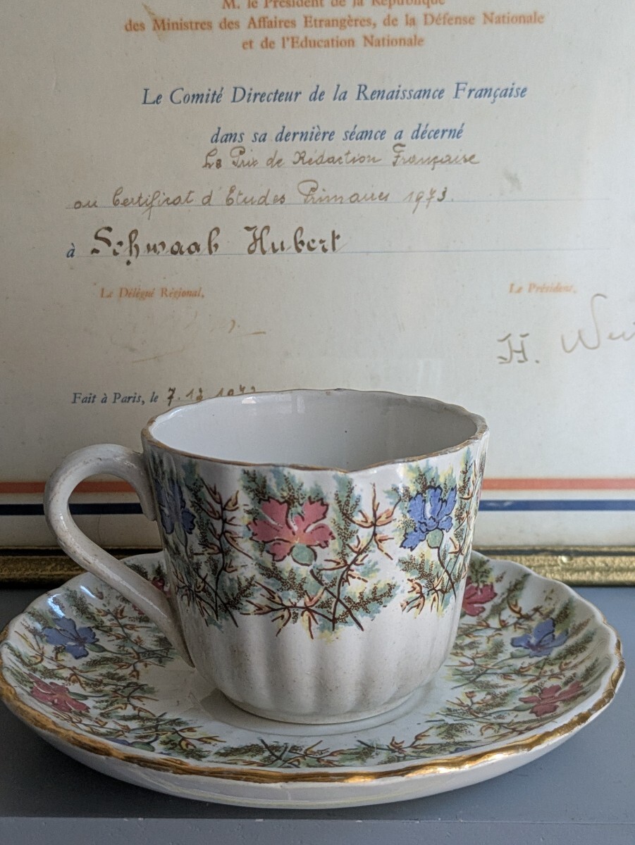 フランスのブロカント蚤の市で購入したSarreguminesサルグミンヌのカップ&ソーサー2客セットです。