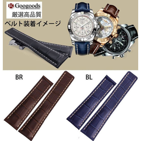 高級本革腕時計ベルト For ブライトリング LB056 ブラック 24mm