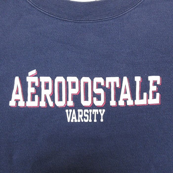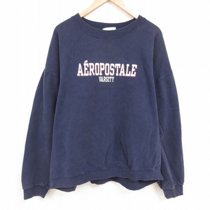 【商品名】 XL★古着 長袖 スウェット メンズ 90年代 90s エアロポステール 大きいサイズ クルーネック USA製 紺【spe】