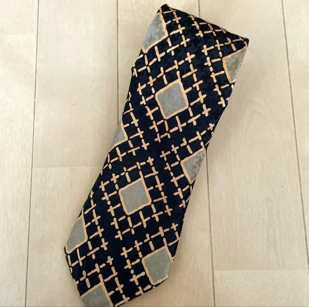 幾何学模様 シルク100%ネクタイ 昭和レトロ