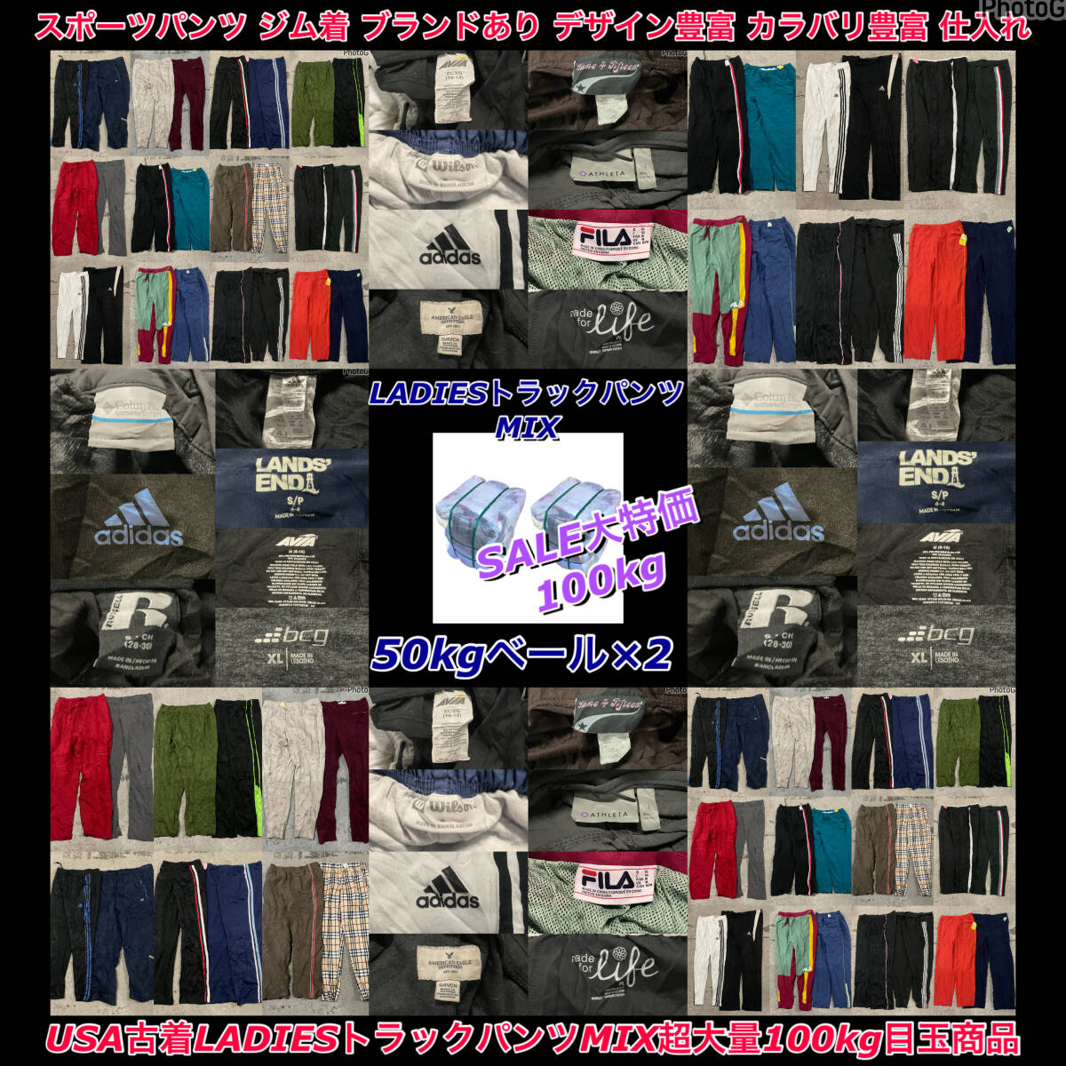 アメリカ直輸入の、オススメLADIESトラックパンツMIX超大量100kg 1ベール 50kg2個口で発送します。