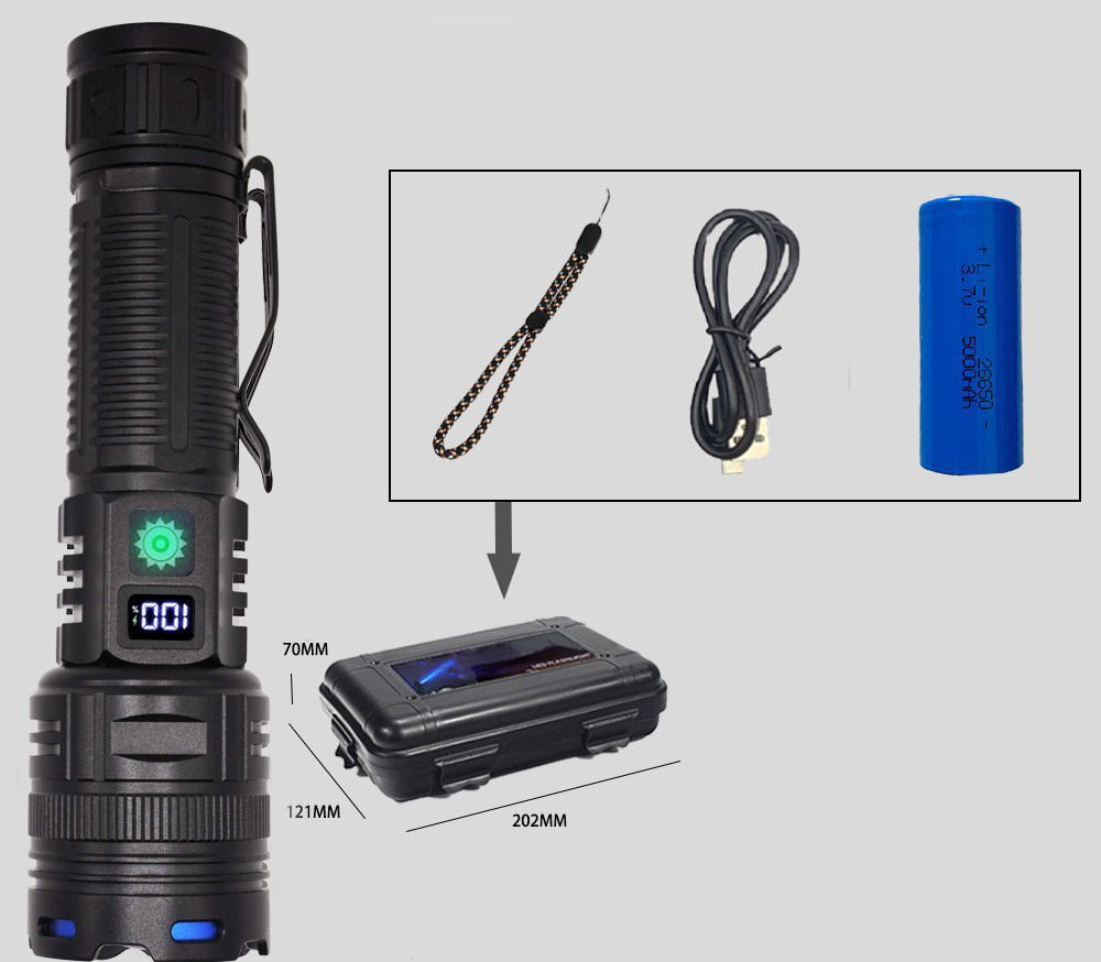◇付属品: 1 * レーザービーズ懐中電灯 + 1 * 26650 5000 mah リチウム電池 + データケーブル (ギフトボックス)