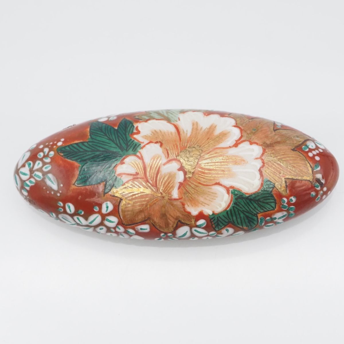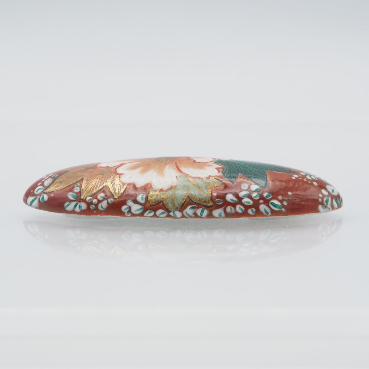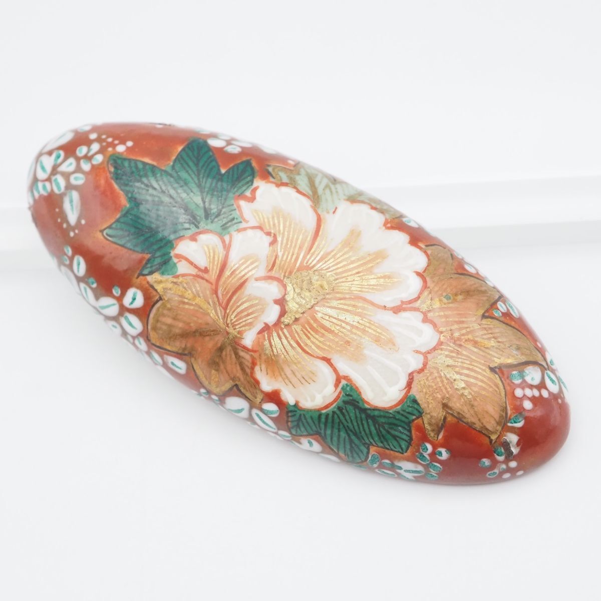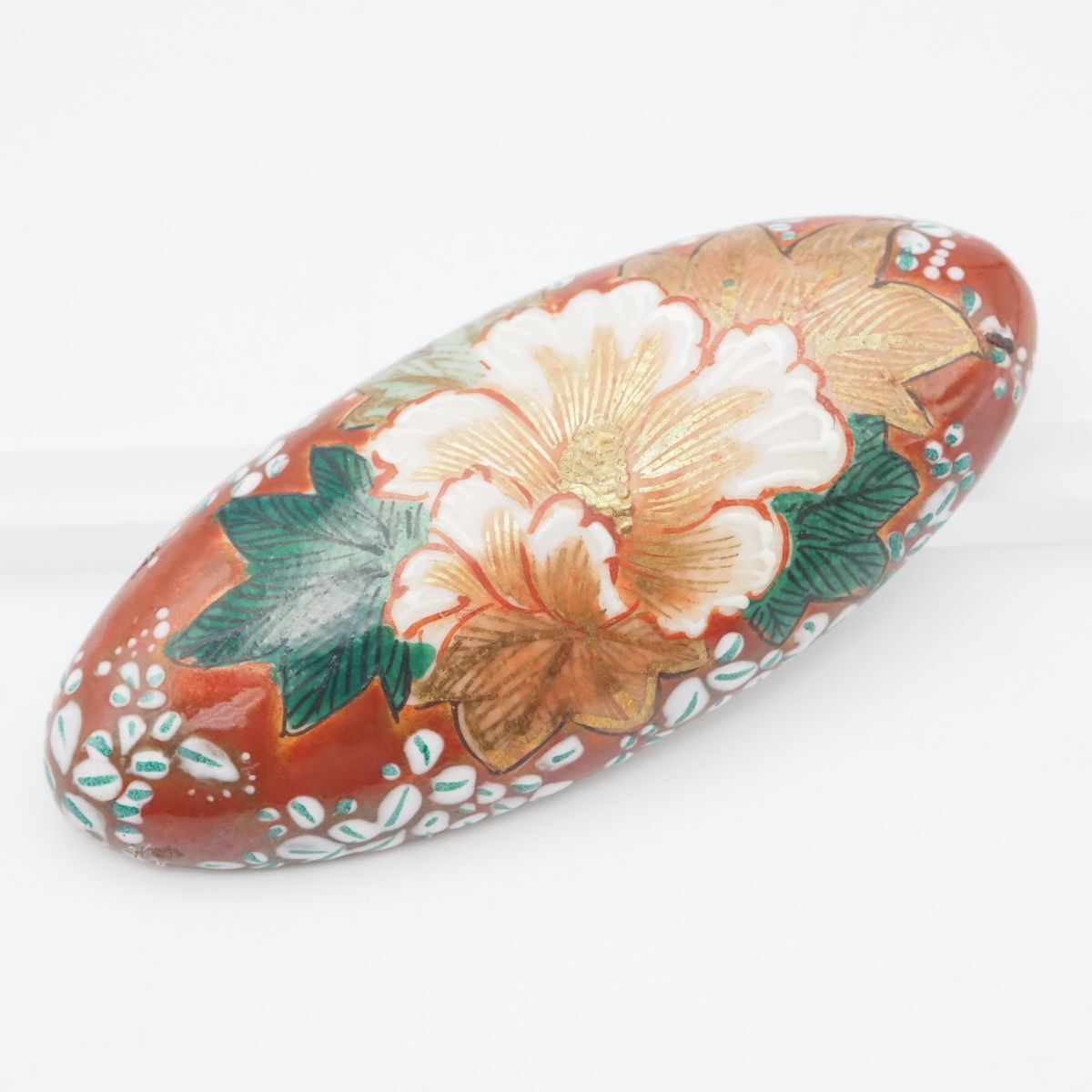 F050 九谷焼 帯留め 金彩 花柄 和装小物 陶器