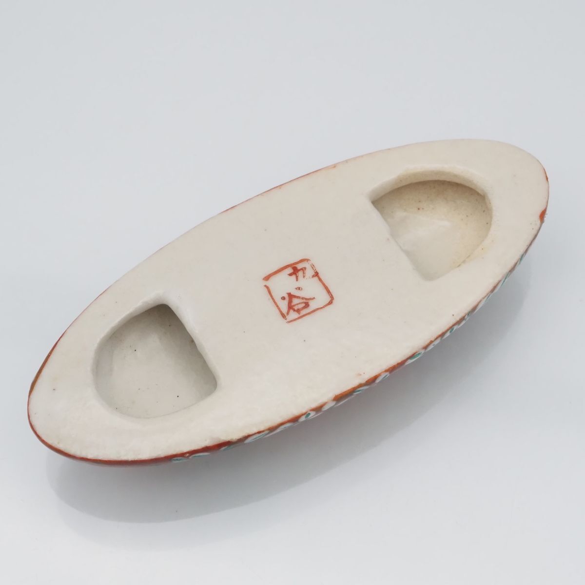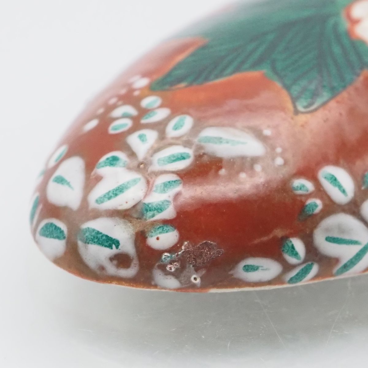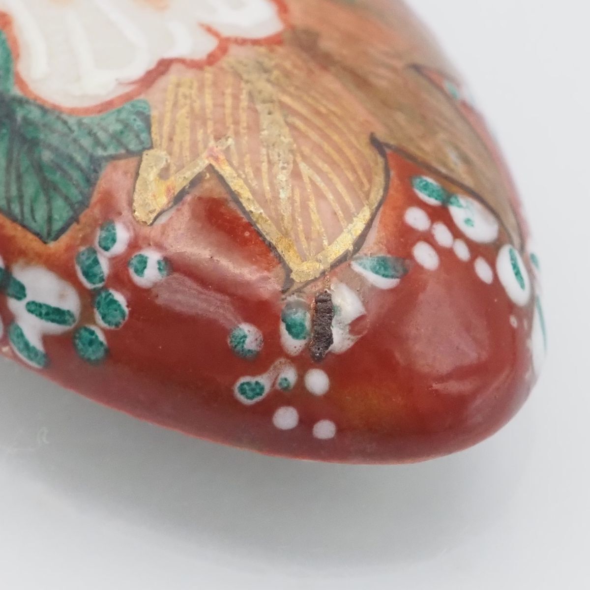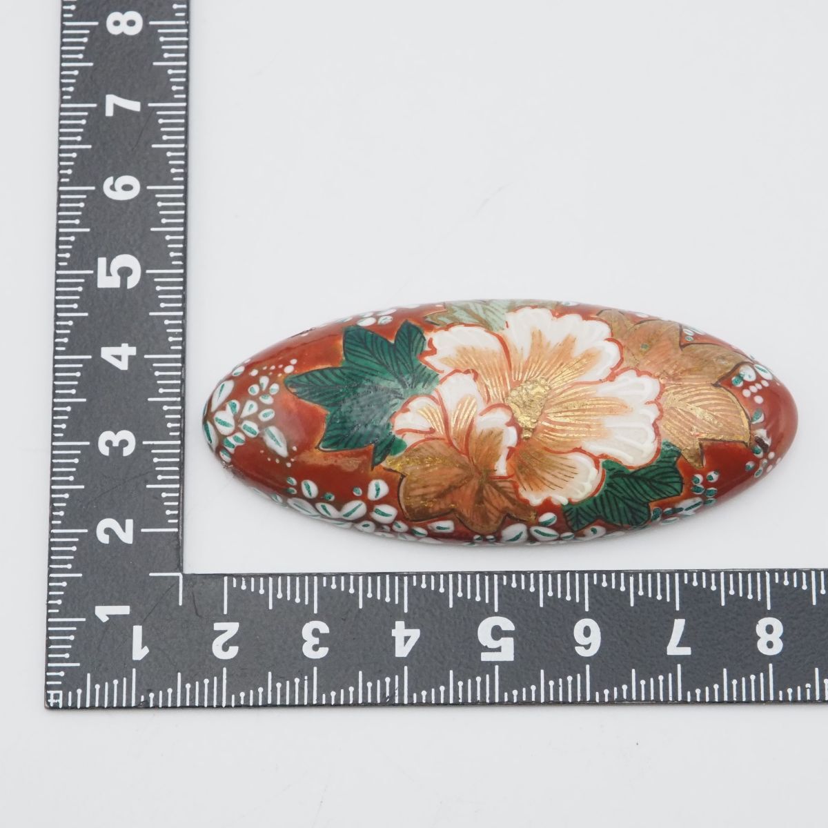 F050 九谷焼 帯留め 金彩 花柄 和装小物 陶器