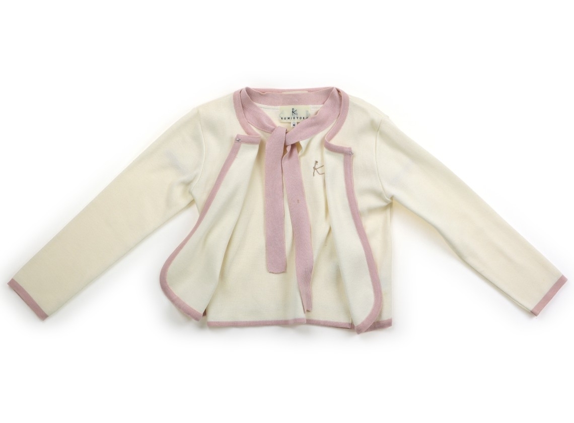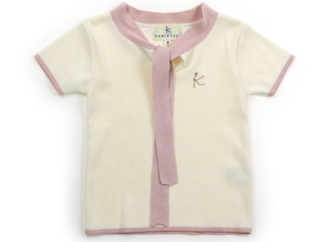 セットです。実際のサイズ表記はMです。綿・アクリル混合のニットです。半袖ニットのボウタイ部分、身頃左側にシミがあります。ボレロの左裾付近に複数のシミがあります。毛羽立ちは目立たず、まだまだお使い頂けます。