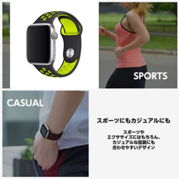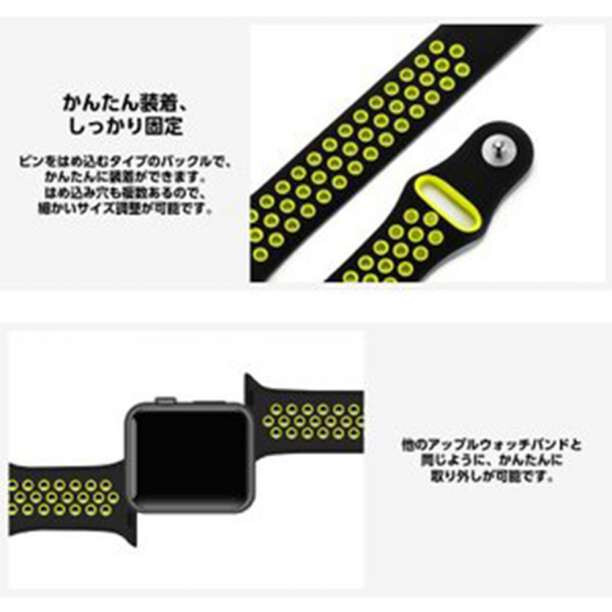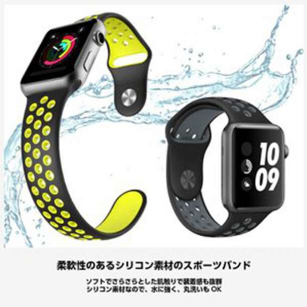 applewatch スポーツバンド ウォッチバンド 38mm 40mm 黒黄S