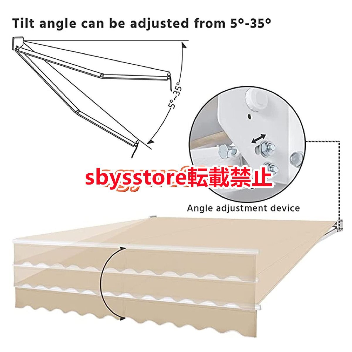 ベランダ 目隠し シェード 2/3/4/5m オーニング 店舗用オーニング 手動日よけ 壁掛けパティオオーニング オーニングシェード突っ張り折りたたみ式 オーニングテント 折りたたみ 家 後付け 上げ DIYガゼボひさし 屋根 後付け屋外 サンシ 格納式 家庭用/商業用中庭バルコニーシ
