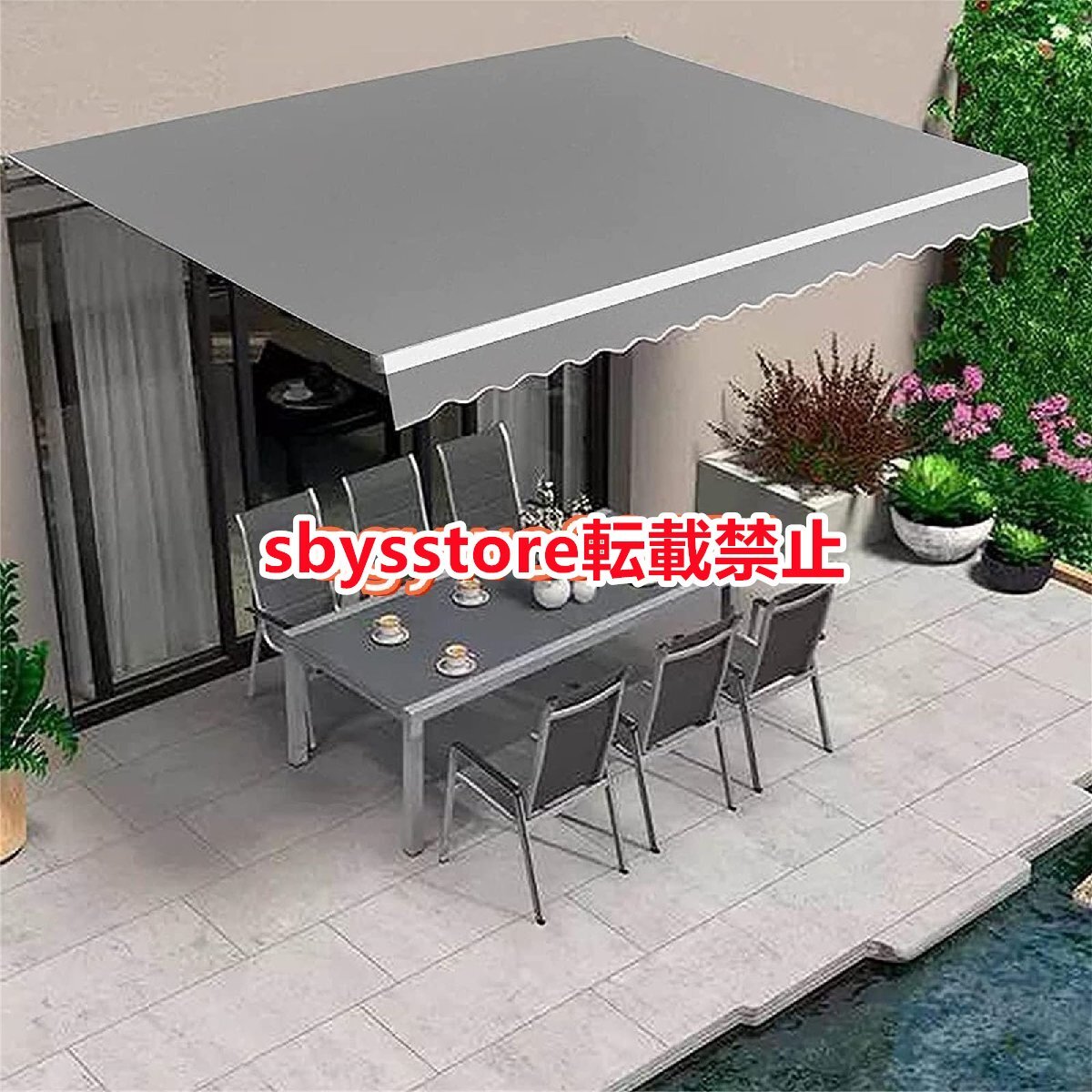 ベランダ 目隠し シェード オーニング 店舗用オーニング 手動日よけ オーニングシェード突っ張り折りたたみ式 屋根 後付け屋外(4x1.5m)