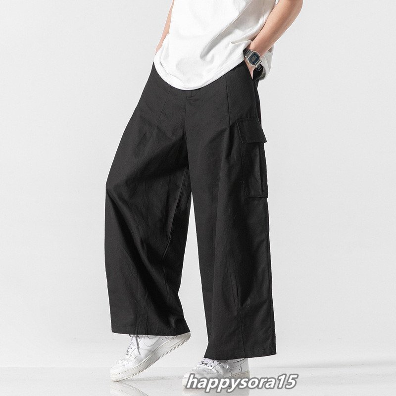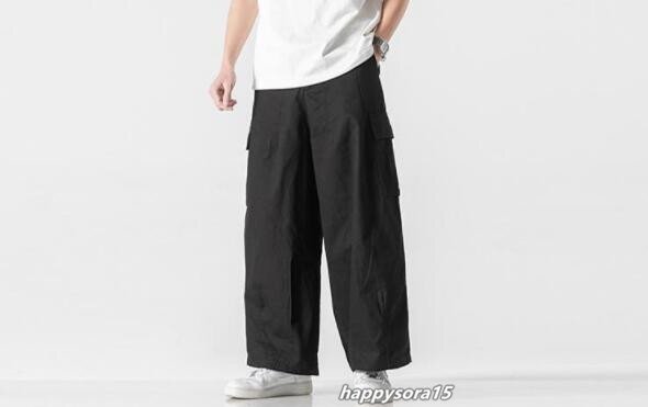カーゴパンツ メンズ ワイドパンツ バギーパンツ サルエルパンツ 通気性 作業着 ミリタリー カジュアル アウトドア ブラック 2XL