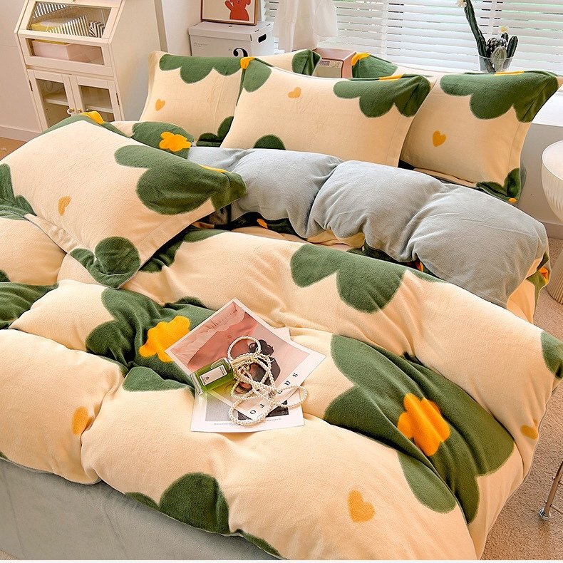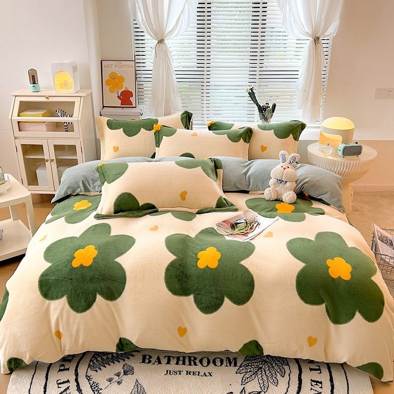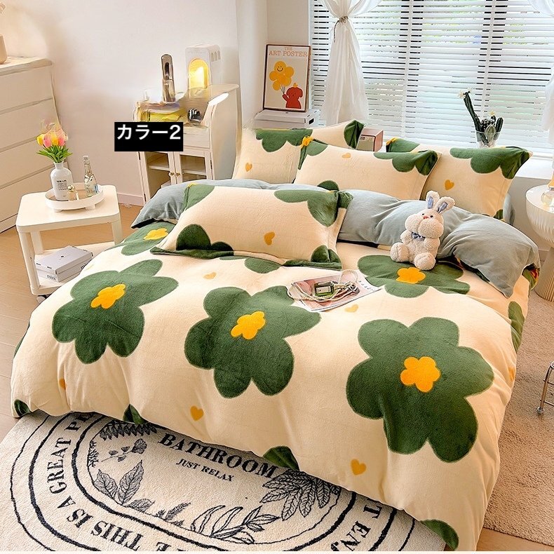 シーツ4点セット ボア掛け布団カバーセット ふとんカバー 枕カバー 静電気防止 暖かい 防寒 可愛い 花柄 キング2Mベッド用フラットシーツ