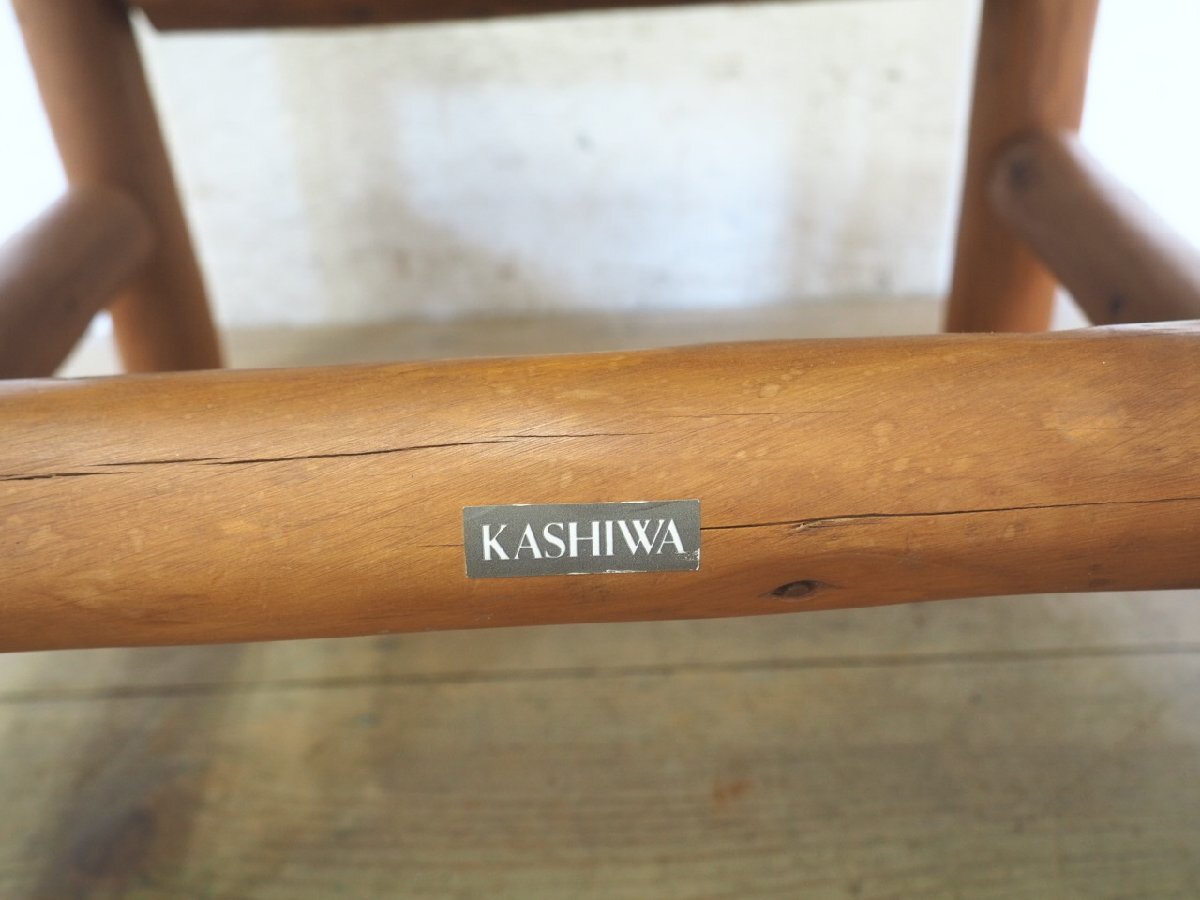 タJ0518◆③柏木工◆珍しいデザインの古い木製アームチェア◆KASHIWA 椅子 イス ダイニング カフェ 喫茶店 レトロ ビンテージN松