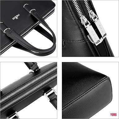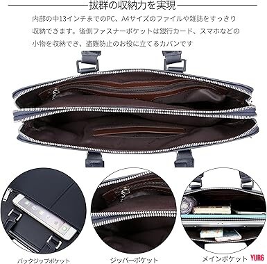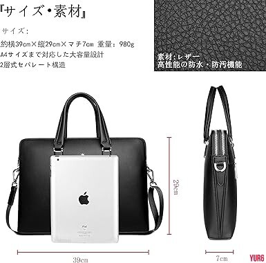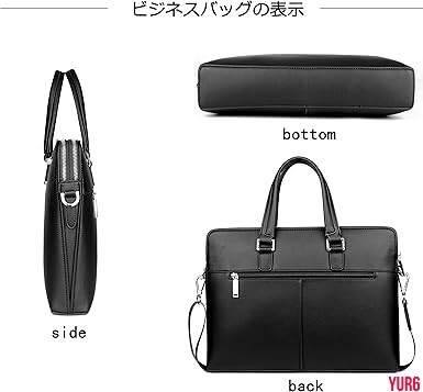 レザー スタイリッシュ ビジネスバッグ ブリーフケース ブラック A4サイズ 13インチノートPC ポケット多数 通勤 通学 普段使い 高級感