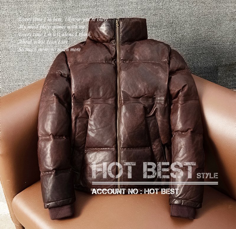 シープスキン MA-1タイプ レザーダウンジャケット 革ジャン ボマーボンバー イタリアンレザー ラム 羊革 Y1906/M~5XLサイズ指定可