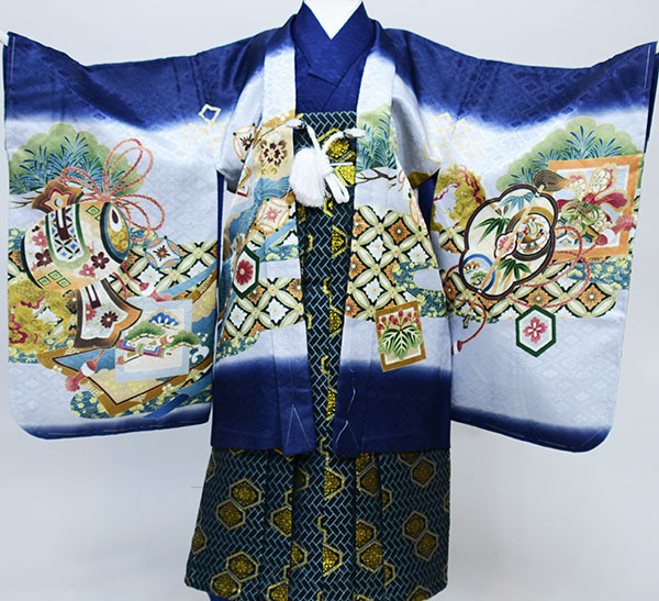 | 項目 | 五歳羽織袴フルセット ・羽織 ・着物 ・長襦袢 ・袴 ・草履 ・角帯 ・扇子 ・短剣 ・羽織紐 ・お守り 以上フルセット |