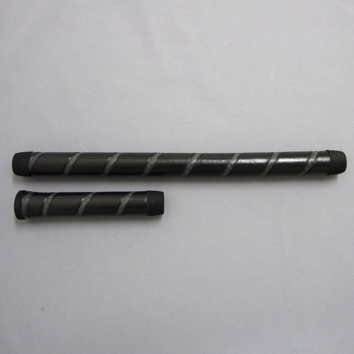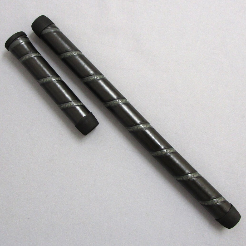 ” Long Grip -ロンググリップシリーズ- “Winnで根強い人気がある、通常より長いモデル。 【2PWR-BK/GY】 2ピース(15cm+33cm)の長いグリップです。 カラー:ブラック/グレー スペック:重量 134.0±5g/内径 62/素材 ETX ※ツーピースグリップは、両グリップの間隔を1.5インチ(3.81cm)以上開けなければルール違反となりますので装着の際にご注意ください。 | |||||||||||