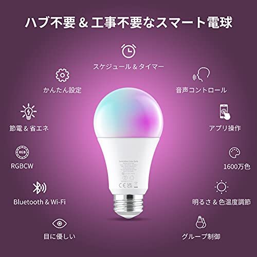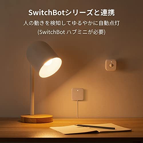 ・ホワイト W1401400・【声で照明をコントロール】勉強している時に「アレクサ、照明を暖かい白色にして」と指示すれば、勉強にぴったりな環境を一瞬で構築でき、集中力がアップします。照明のオン/オフのほか、明るさ、色温度、カラーも音声で調節可能。Google Home、SiriやIFTTTなどにも対応。・ 【SwitchBotシリーズと連携】夜中にトイレに行く時、ベッドの下に設置した人感センサーが人の動きを検知し、トイレのスマート電球が自動でゆっくり20%まで明るくなります。急にまぶしい光りを入り、眠気が邪魔されることはありません。・ 【Bluetooth & Wi-Fi 】取り付け工事がいらず、スマホで簡単に操作できます。ハブも必要なくWi-Fi(2.4 GHzのみ対応)と直接に繋げられます。Wi-Fiモジュールのほか、Bluetoothモジュールも搭載しているので、ルーターが故障やWi-Fi環境が不安定でも操作可能。・ 【使用シーンに合わせて自由に調光・調色】SwitchBotアプリでミュージックモードを選択し、再生する音楽に合わせて光があなたの生活を明るくする!