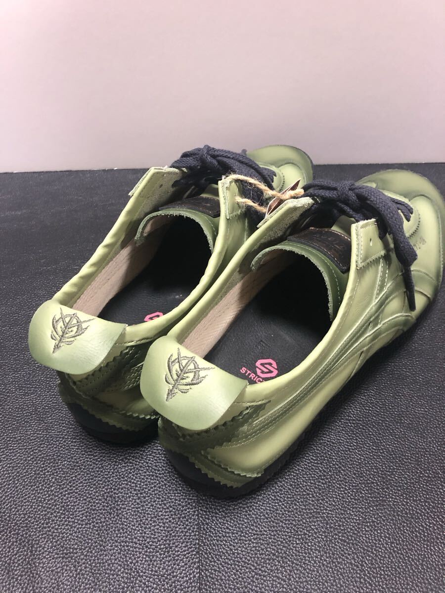 「NIPPON MADE」シリーズの定番モデル「MEXICO 66 DELUXE」をベースに、初代ガンダム、ザクⅡ、シャア専用ザクの機体をイメージした全3色展開。アッパーの外側前足部には、カラーごとにそれぞれのイメージとなっているモビルスーツの機体番号、ヒールフラップには、地球連邦軍・ジオン公国軍のマークが刺繍で縫いこまれている。