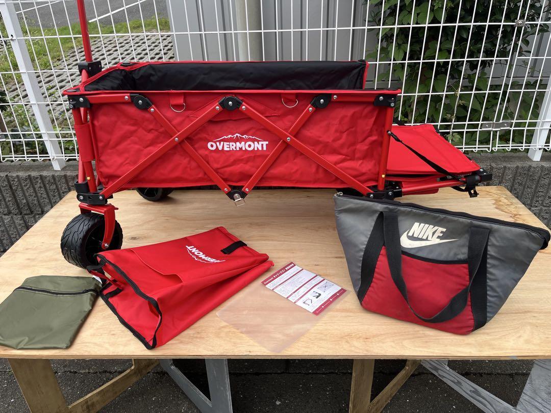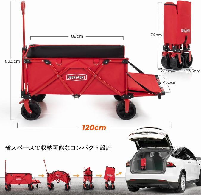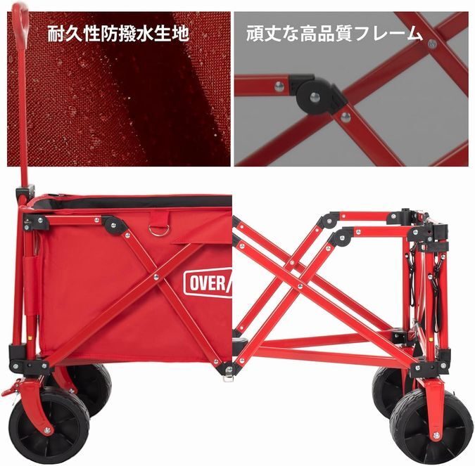 OVERMONT キャリーカート アウトドアワゴン 150L 120kg ストッパー付脱着式キャスター後部展開可 折り畳み ワンタッチ収束式 おまけ付き